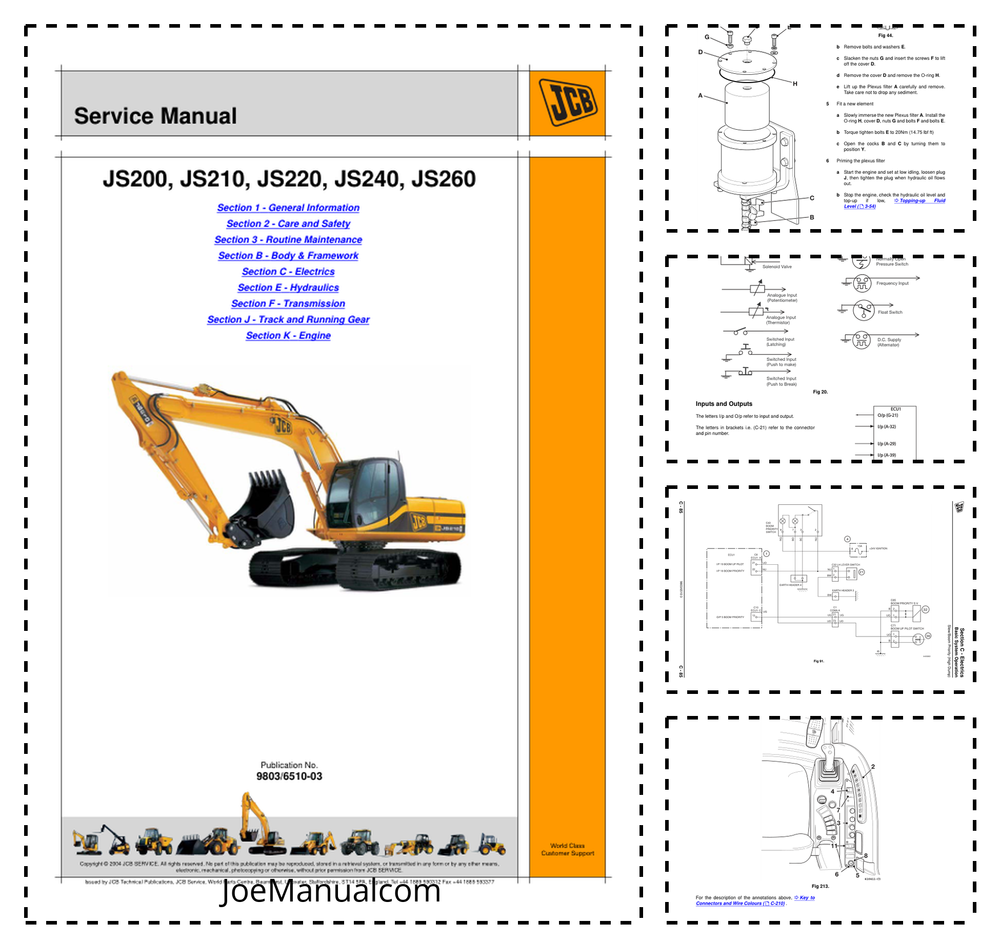 JCB JS200 JS210 JS220 JS240 JS260 Excavator Service Manual 9803 6510-3 This service manual provides detailed technical guidance for the maintenance, repair, and operation of JCB JS200, JS210, JS220, JS240, and JS260 excavator models. It includes comprehensive information on system diagnostics, component specifications, troubleshooting procedures, and service instructions to support efficient equipment upkeep. The manual serves as an essential reference for technicians and operators, ensuring adherence to manufacturer standards and enhancing the reliability and performance of these heavy machinery units.