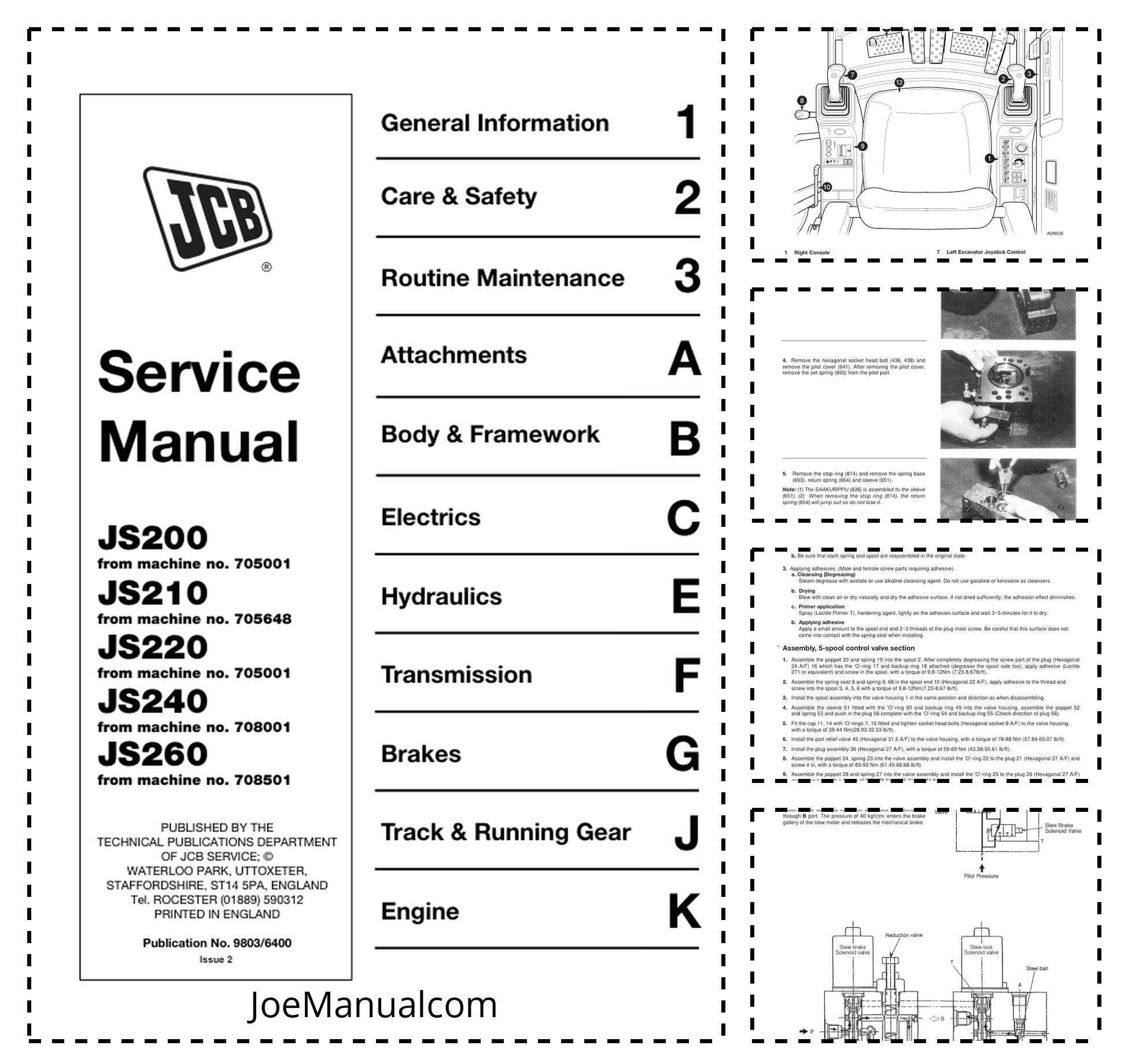 JCB JS200 JS210 JS220 JS240 JS260 Excavators Service Manual 9803/6400