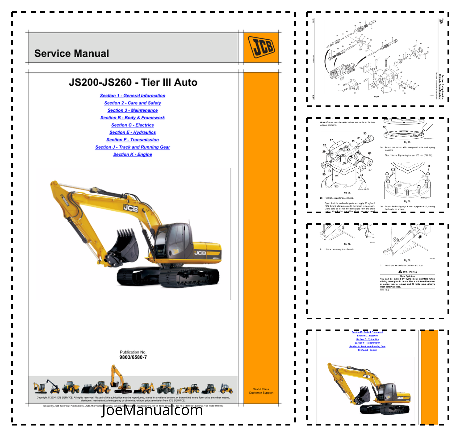 JCB JS200 JS260 Tier III Auto Excavators Service Manual 9803/6580-7