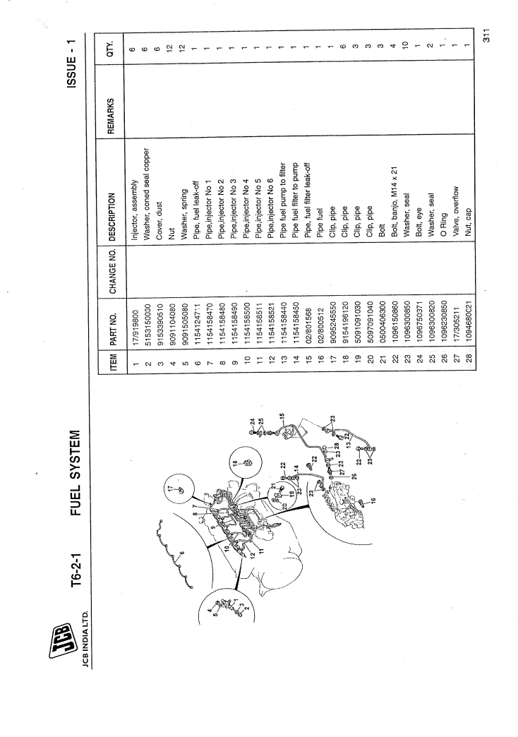 JCB JS210 LC Excavator Parts Catalog SN from M110027