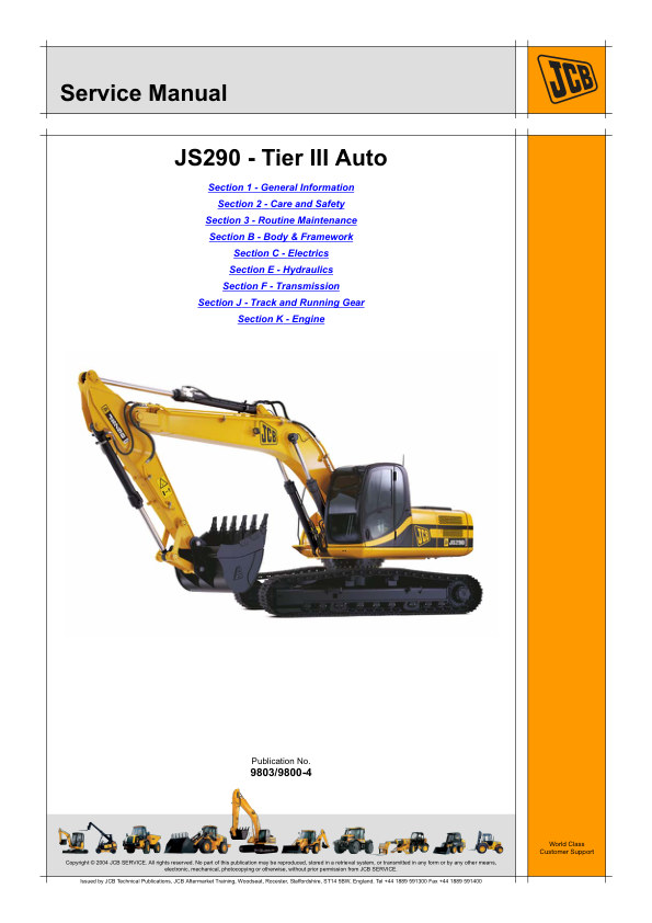 JCB JS290 Tier III Auto Excavator Service Manual 9803/9800