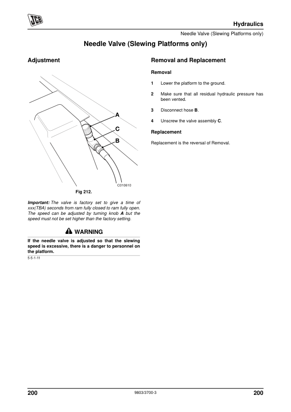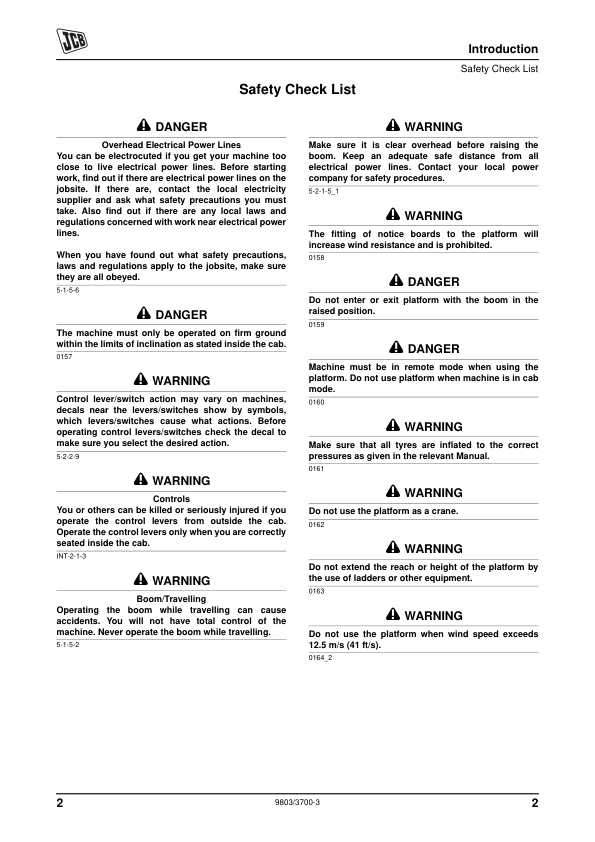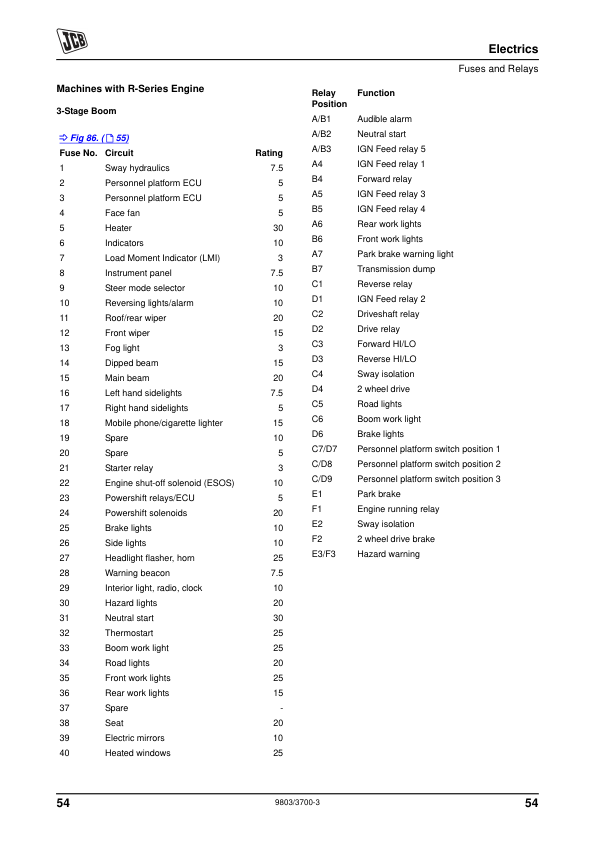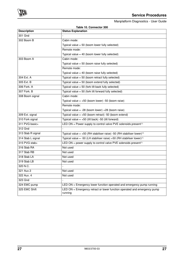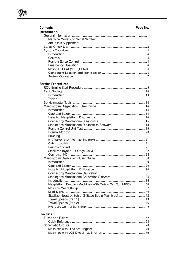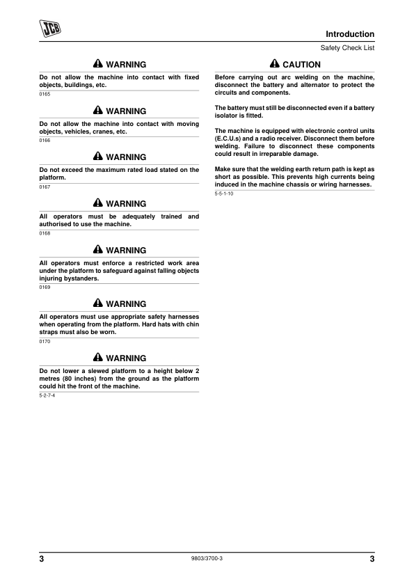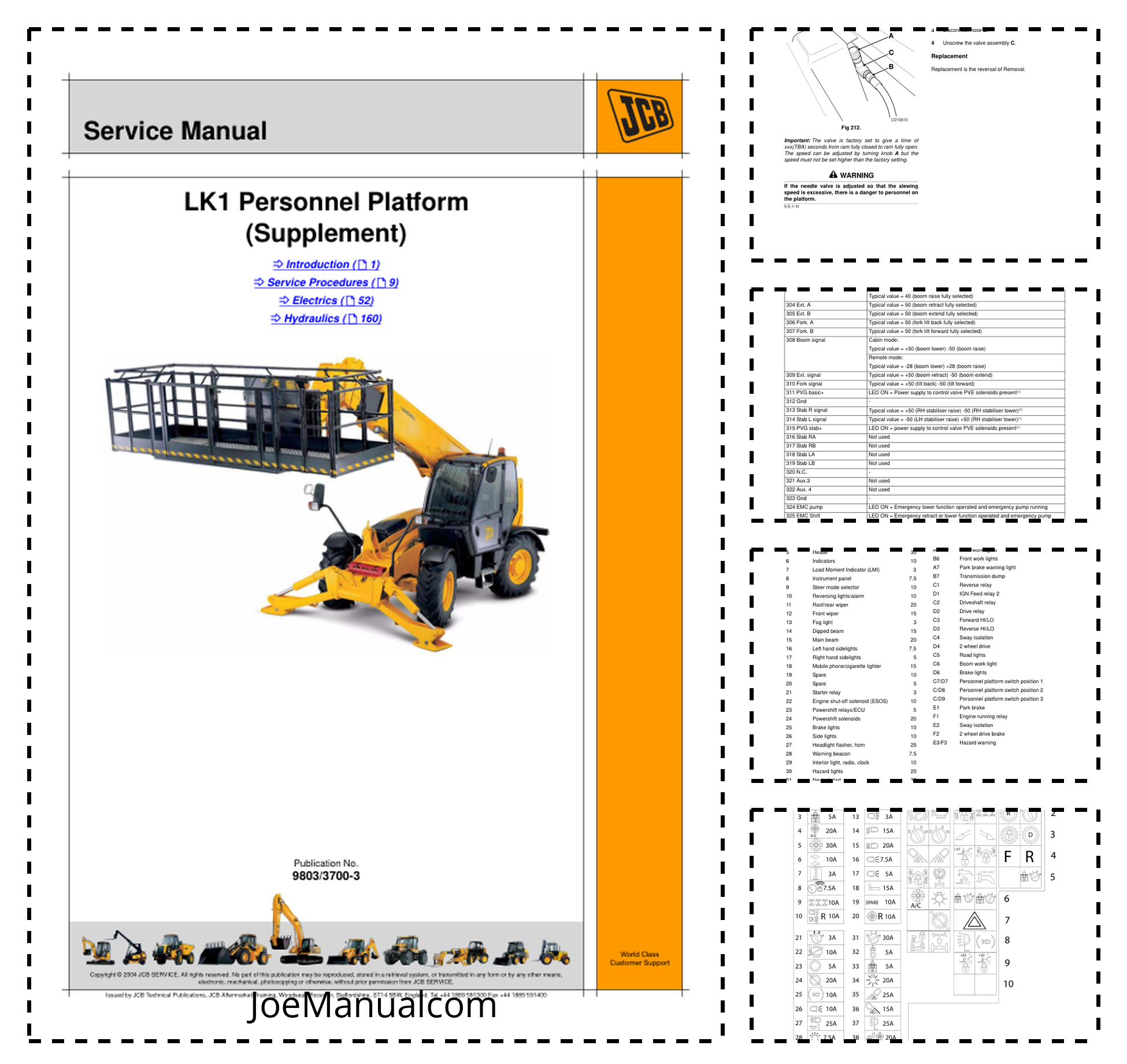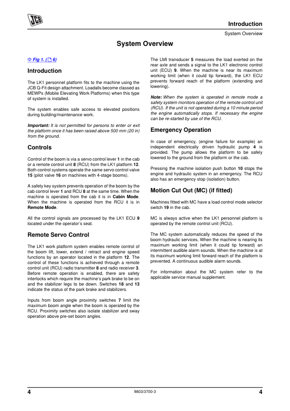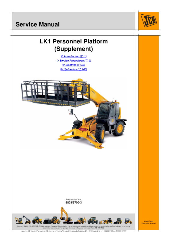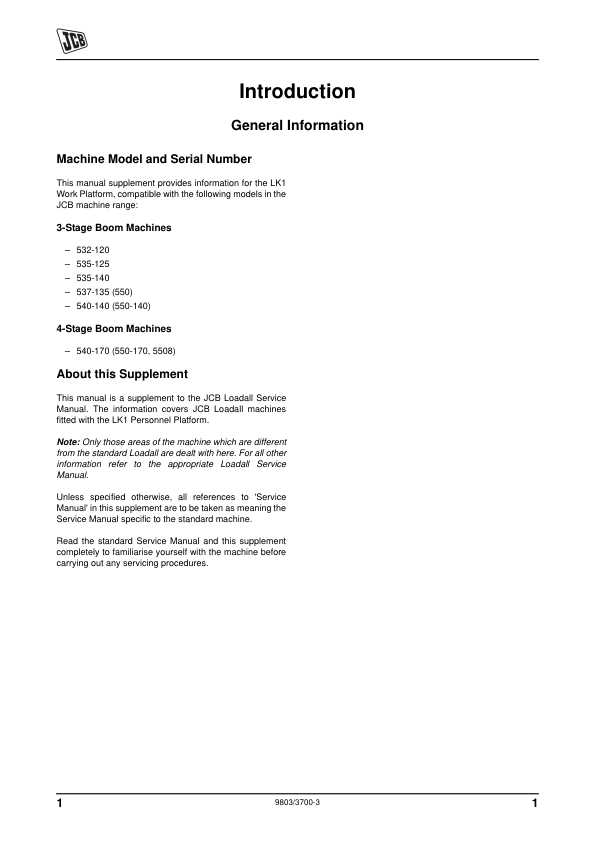 JCB LK1 Personnel Platform Loadall Service Manual Supplement 9803/3700