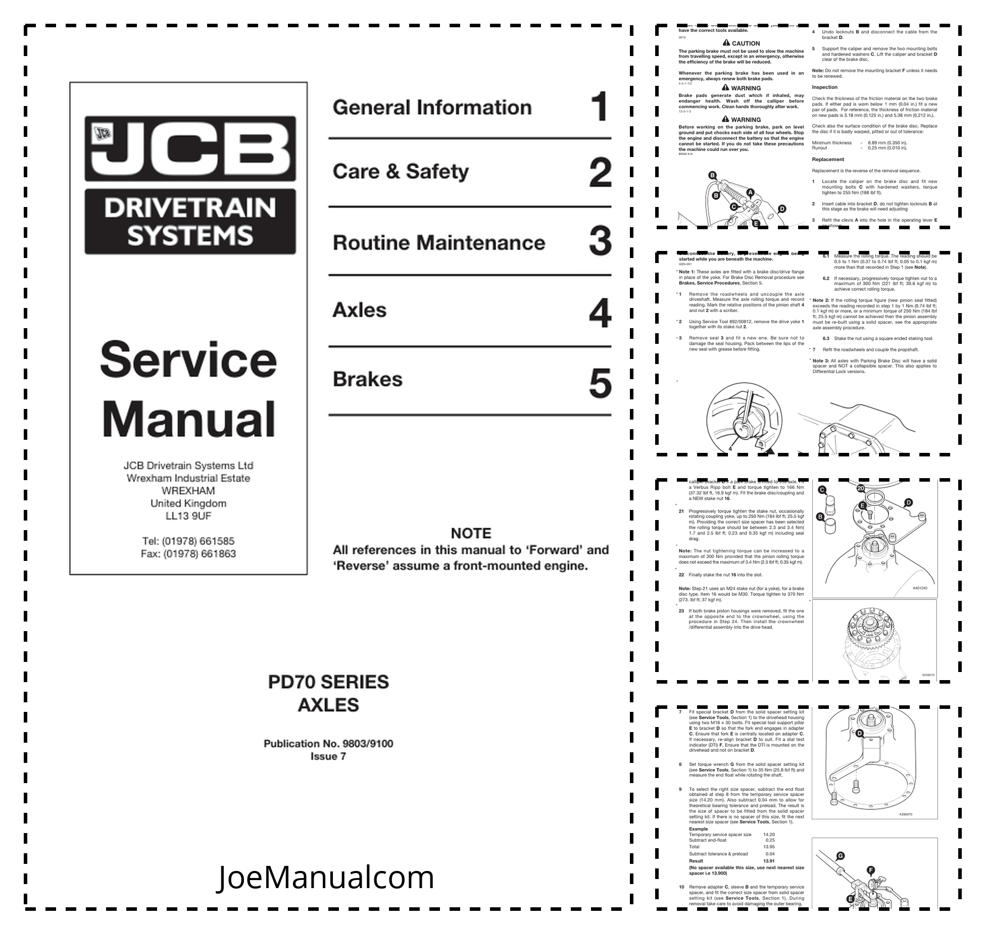 JCB PD70 Axle Service Manual 9803/9100