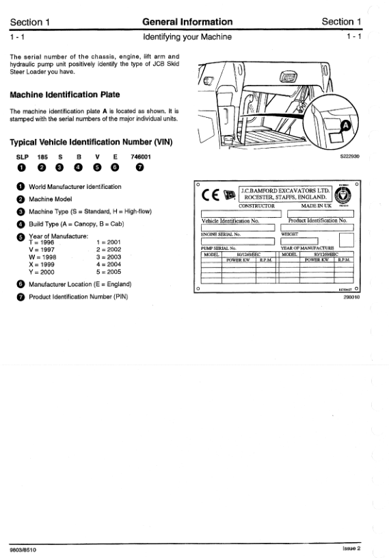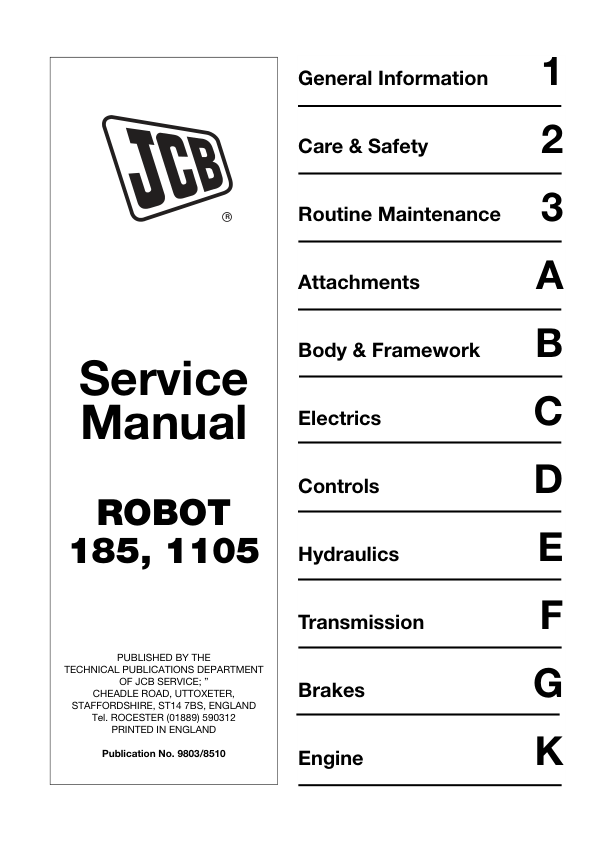JCB Robot 185 1105 Skid Steer Loader Service Manual 9803/8510