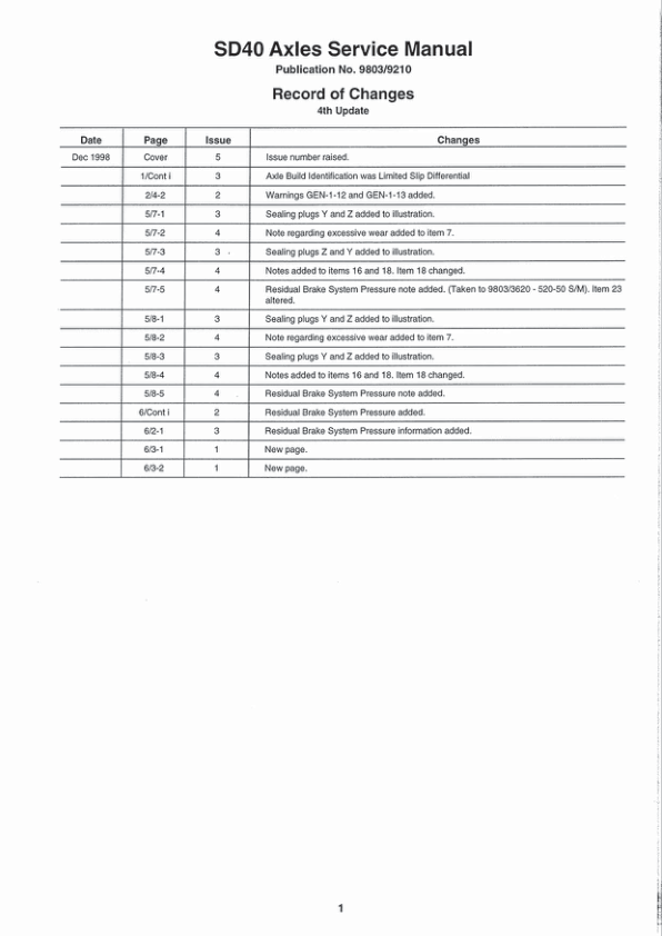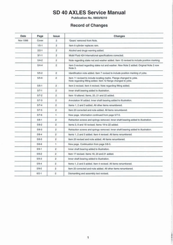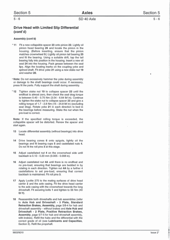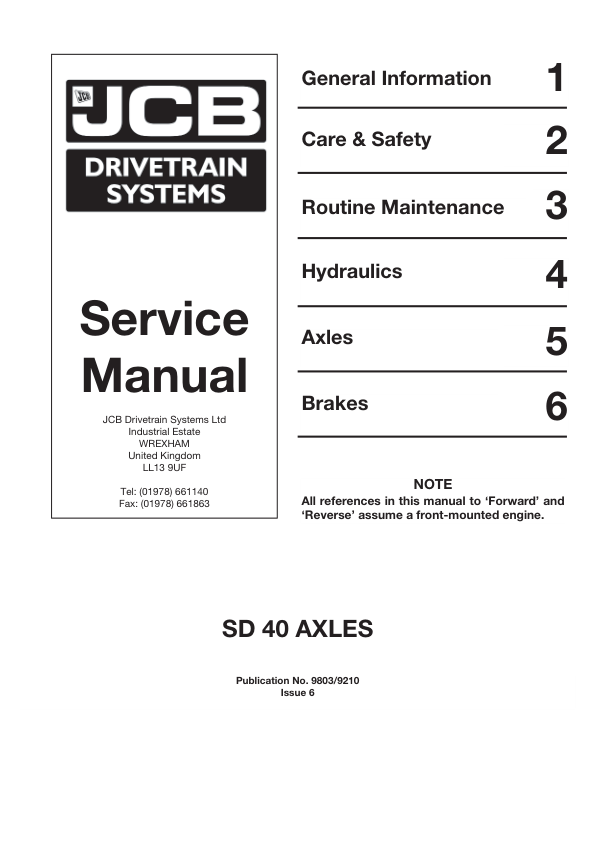 JCB SD 40 Axle Service Manual 9803/9210