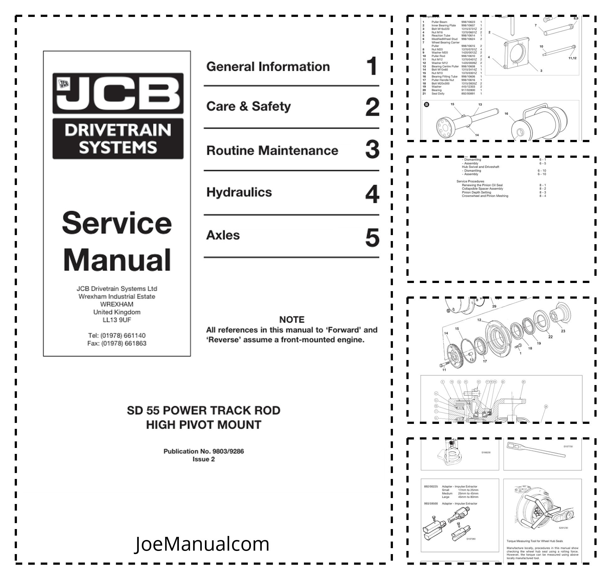 JCB SD55 Power Track Rod High Pivot Mount Axle Service Manual 9803/9286