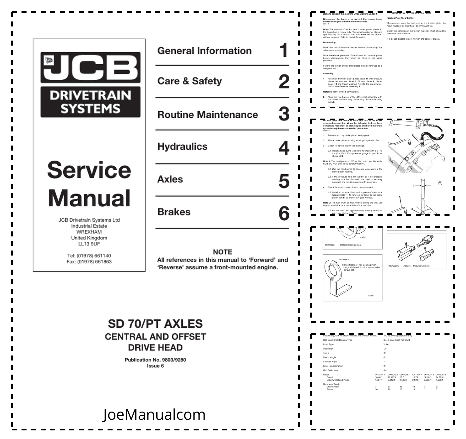 JCB SD70 PT Axle Central Offset Drive Head Service Manual 9803/9280