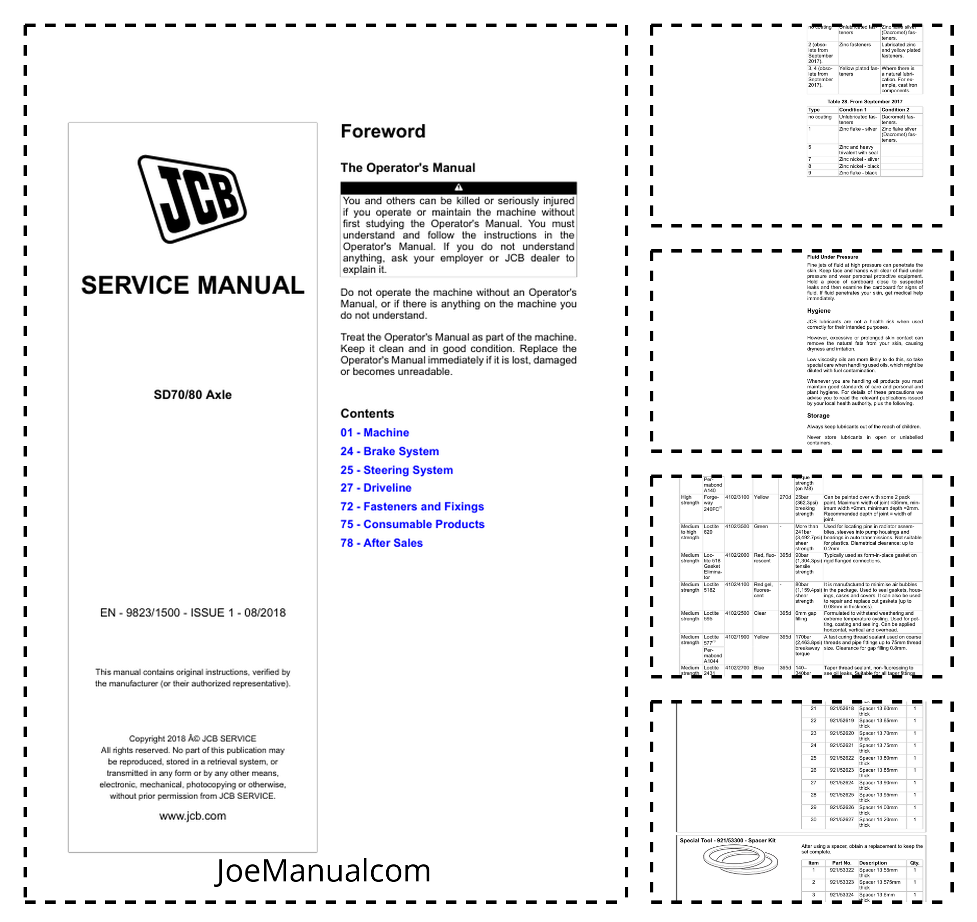 JCB SD70 SD80 Axle Service Manual 9823/1500