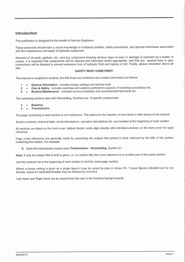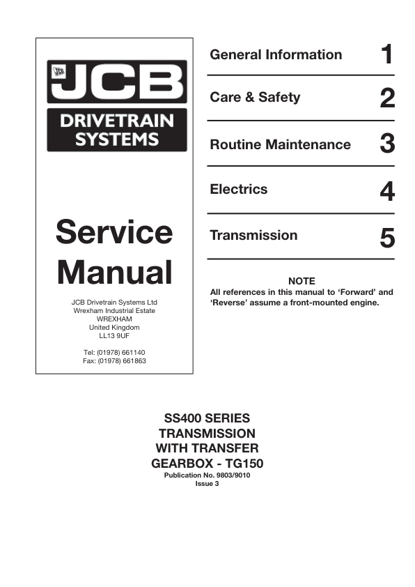 JCB SS400 Series Transmission TG150 Service Manual 9803/9010