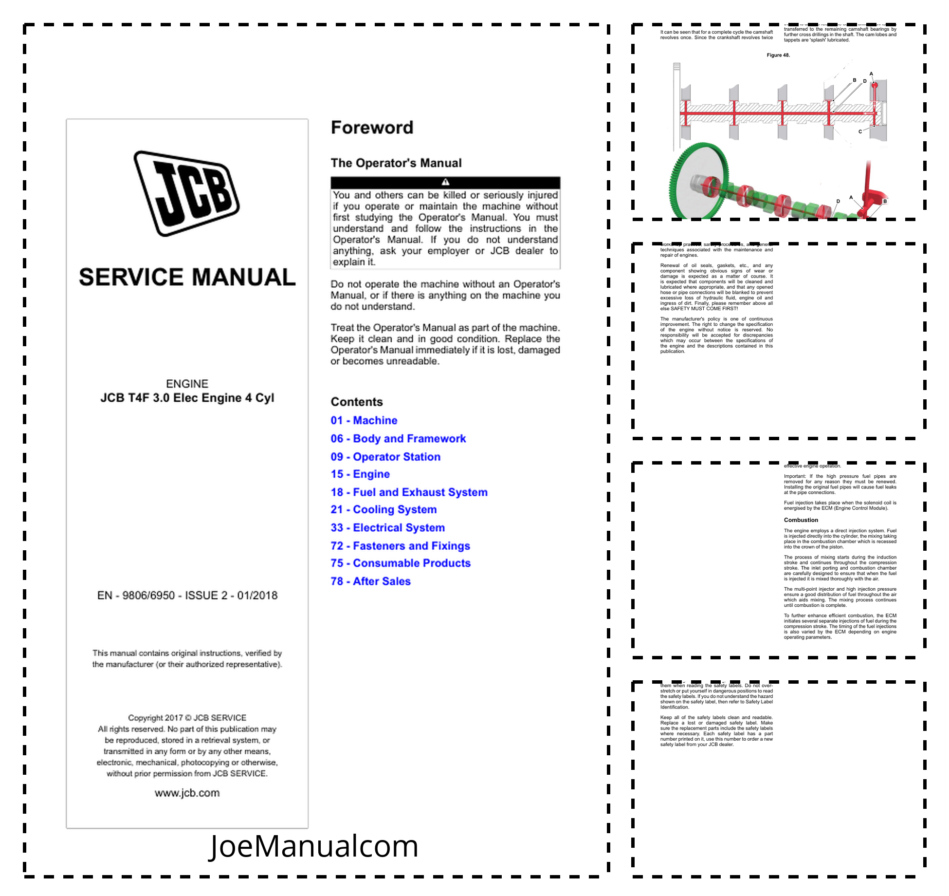 JCB T4F 3.0 Elec Engine 4 Cyl Service Manual 9806/6950