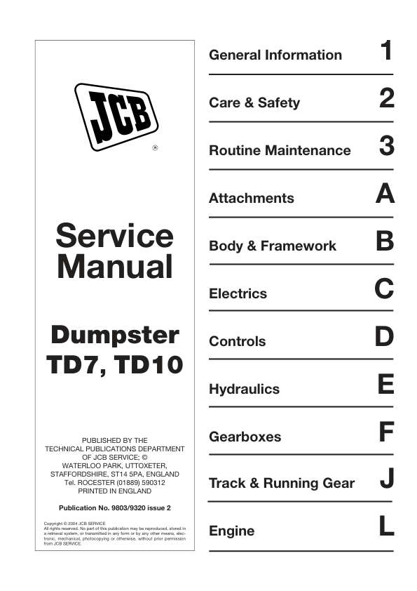 JCB TD7 TD10 Dumpster Service Manual 9803/9320