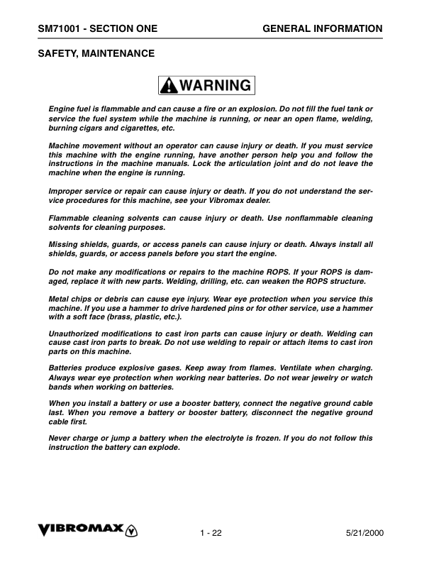 JCB Vibromax 752C Tandem Drum Roller Service Manual 9803/9707