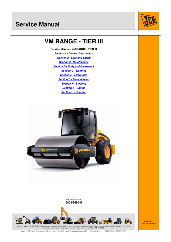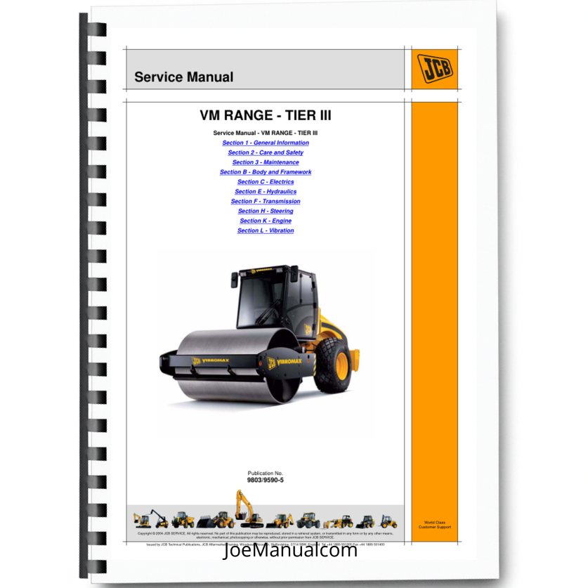 JCB VM46 75 115 132 146 166 200 D-PD VM Range Tier III Roller Service Manual This service manual is specifically designed for the JCB D-PD VM Range of Tier III compact track rollers, including models VM46, 75, 115, 132, 146, 166, and 200. It provides detailed technical information for maintenance, repair, and operational procedures, ensuring users can effectively service and troubleshoot these heavy-duty machines. The manual includes comprehensive diagrams, specifications, and step-by-step guidance for routine inspections, component replacement, and system diagnostics. It is an essential resource for mechanics, technicians, and operators seeking to maximize equipment efficiency, reliability, and compliance with Tier III emissions standards. Whether for daily maintenance or complex repairs, this manual offers clear instructions to support optimal performance and longevity of the machinery.