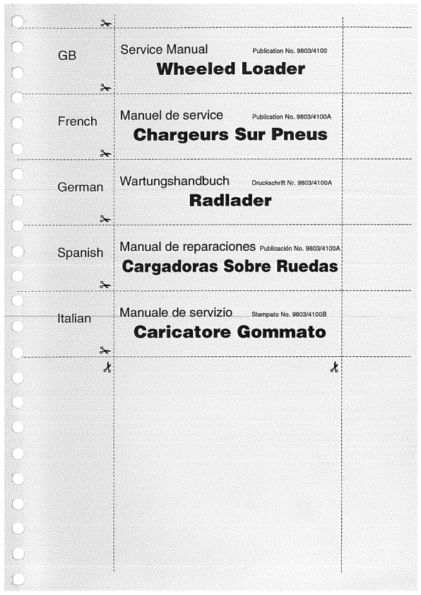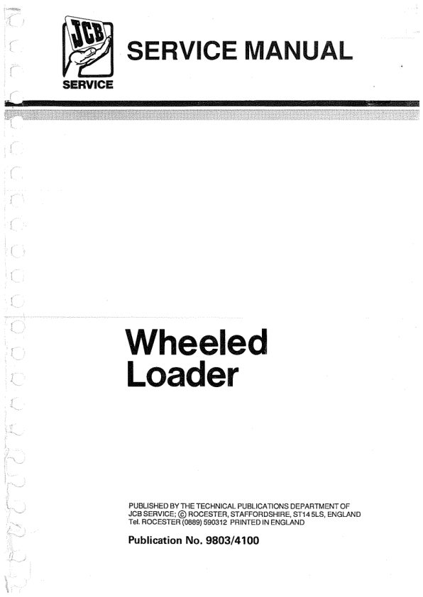 JCB Wheeled Loader Service Manual 9803/4100 The JCB Wheeled Loader Service Manual 9803/4100 is a comprehensive resource designed to provide detailed guidance for the maintenance, repair, and troubleshooting of JCB wheeled loader models 9803 and 4100. This manual includes technical specifications, operational procedures, diagnostic instructions, and maintenance schedules to ensure optimal performance and longevity of the equipment. It serves as an essential tool for technicians and operators, offering step-by-step guidance on routine servicing, component replacement, and system checks. The manual also features diagrams, illustrations, and safety protocols to facilitate accurate and efficient service operations. By following the procedures outlined in this document, users can maintain the reliability and efficiency of their JCB wheeled loaders while adhering to manufacturer standards. It is a valuable reference for both on-site repairs and off-site maintenance planning, ensuring that all service activities are performed correctly and safely.