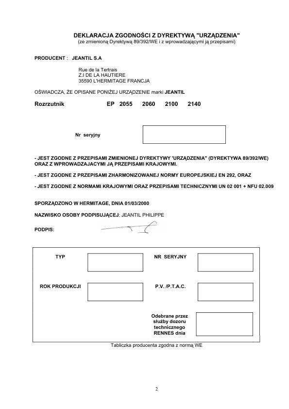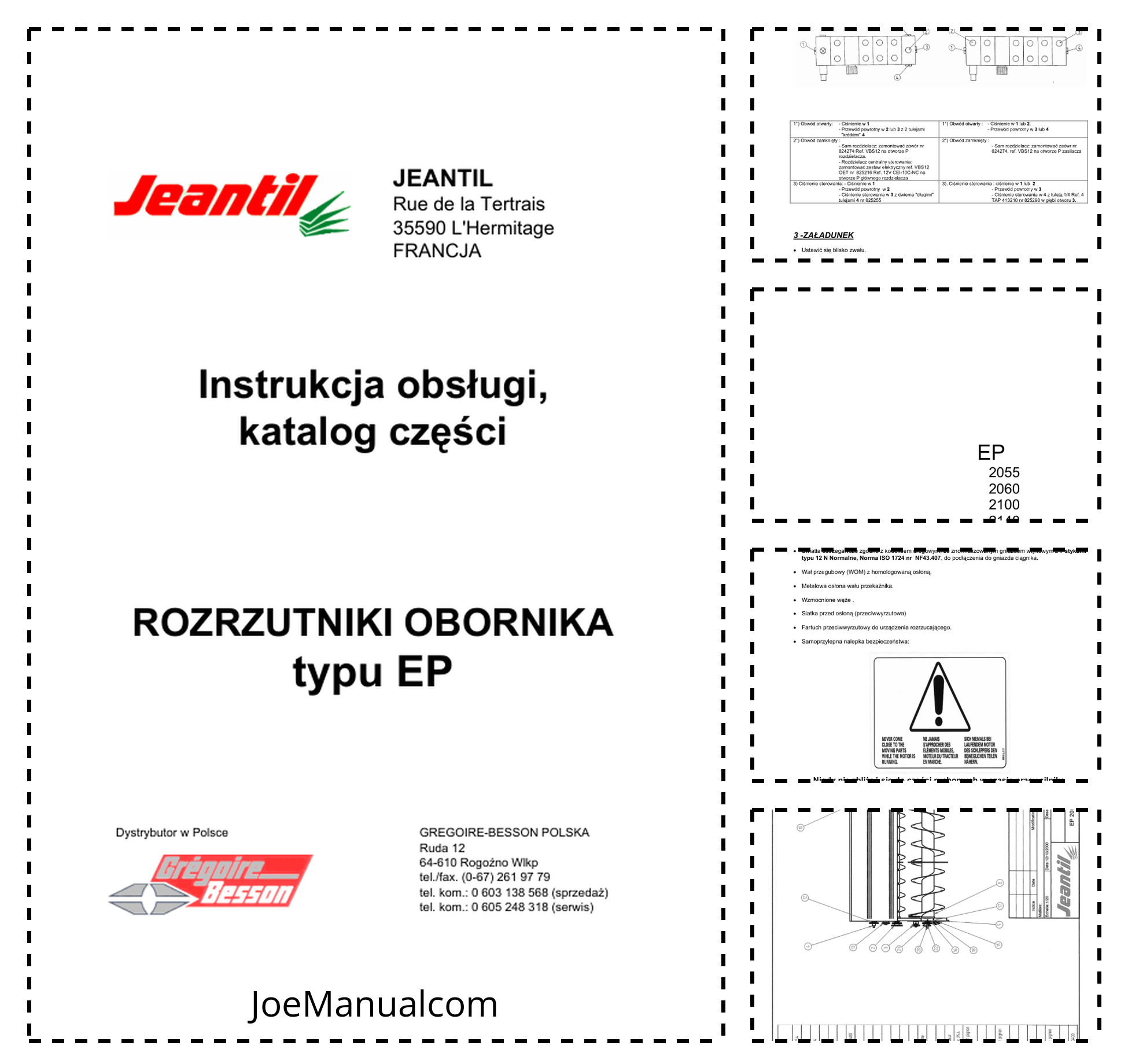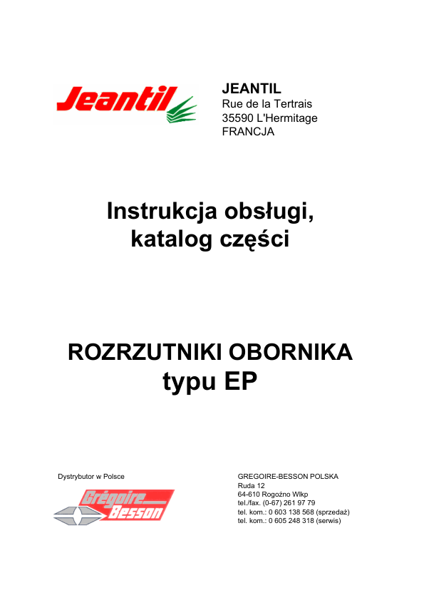 Jeantil EP2055 EP2060 EP2100 EP2140 Manure Spreaders Operators Manual PL