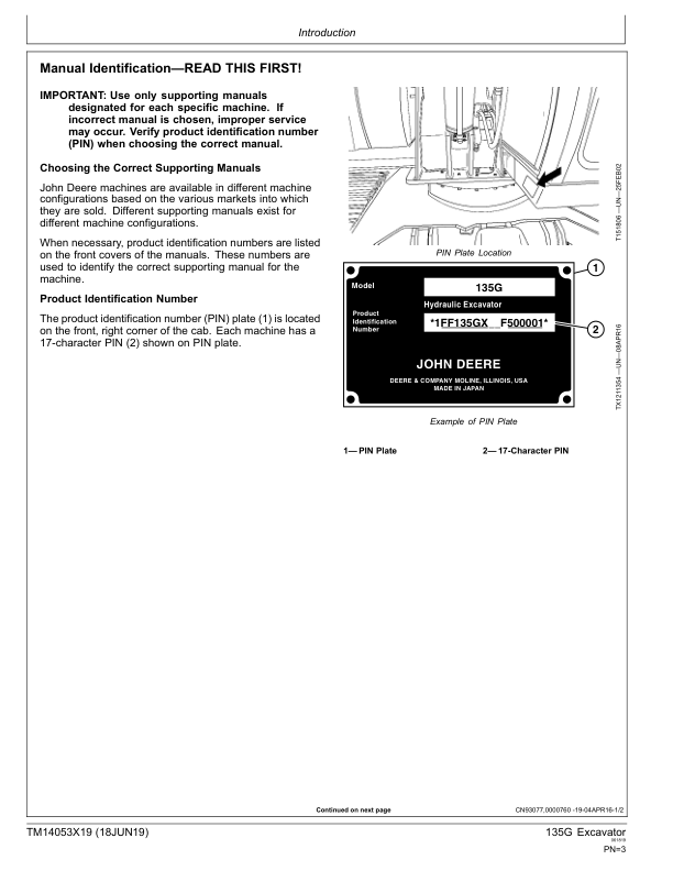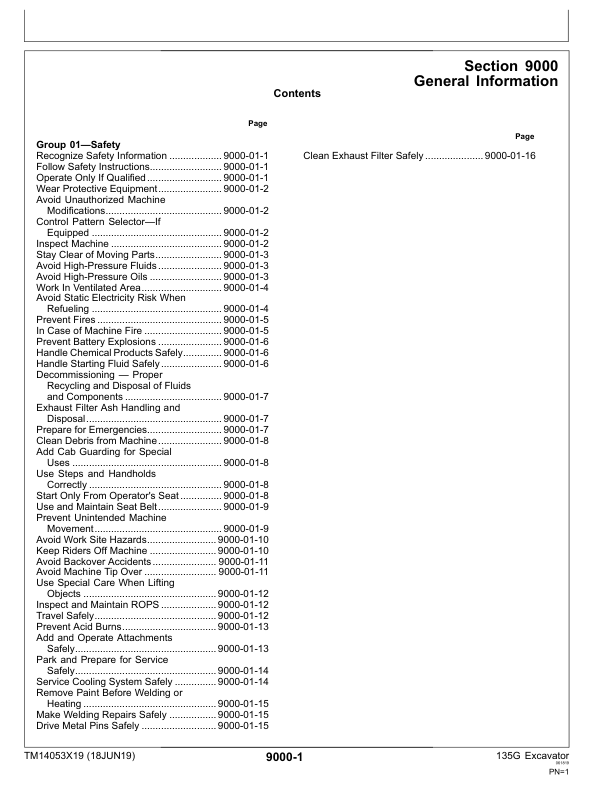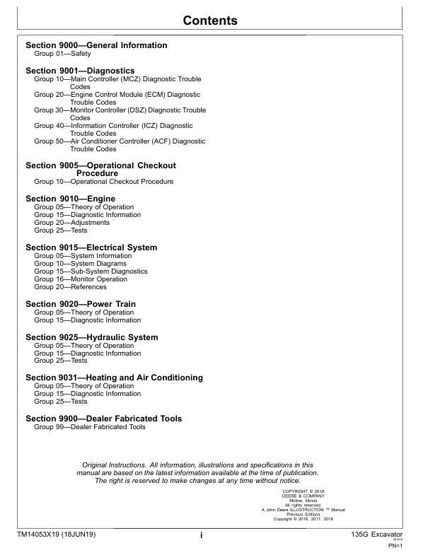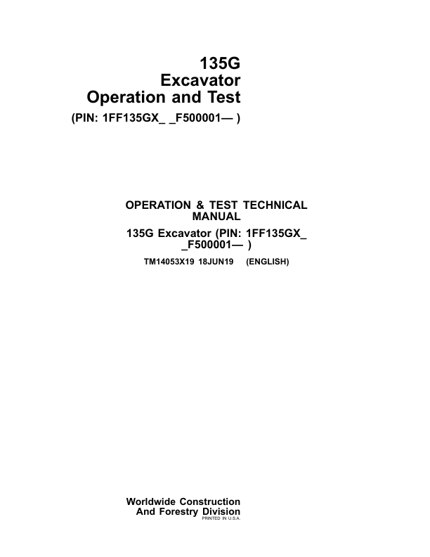 John Deere 135G Excavator Operation and Test Manual TM14053X19