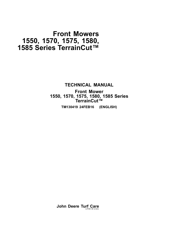 John Deere 1550 1570 1575 1580 1585 TerrainCut Front Mowers Technical Manual TM130419