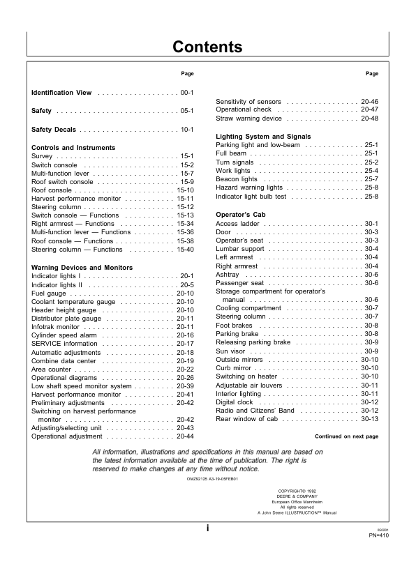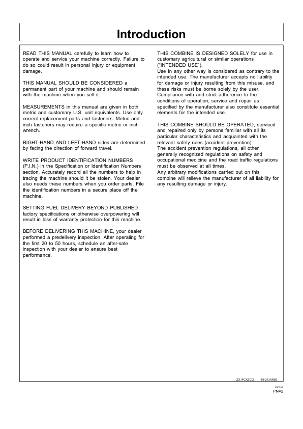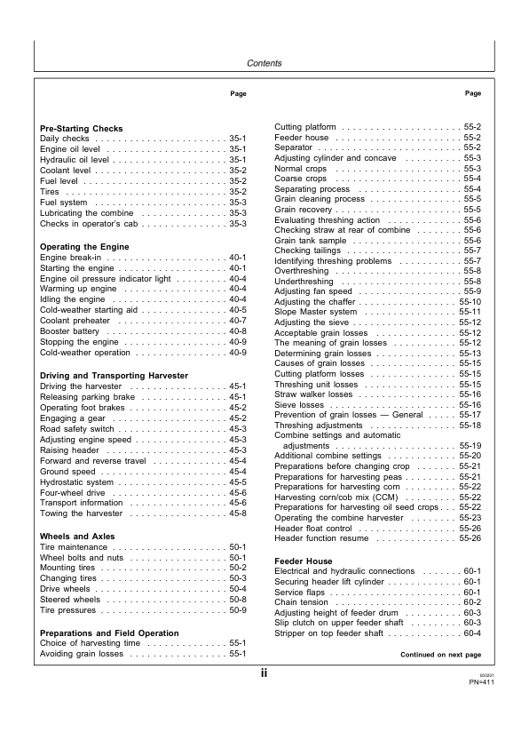 John Deere 2054 2056 2058 2064 2066 Combine Operators Owners Manual OMZ92125