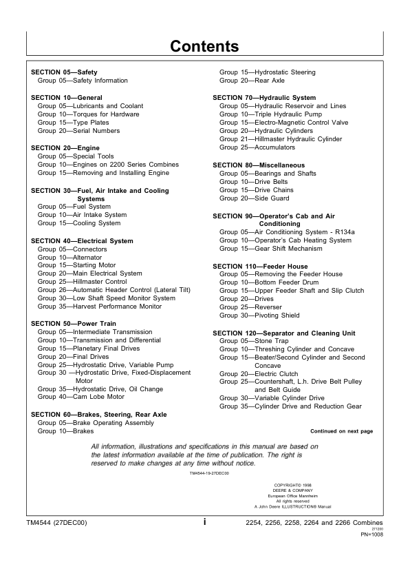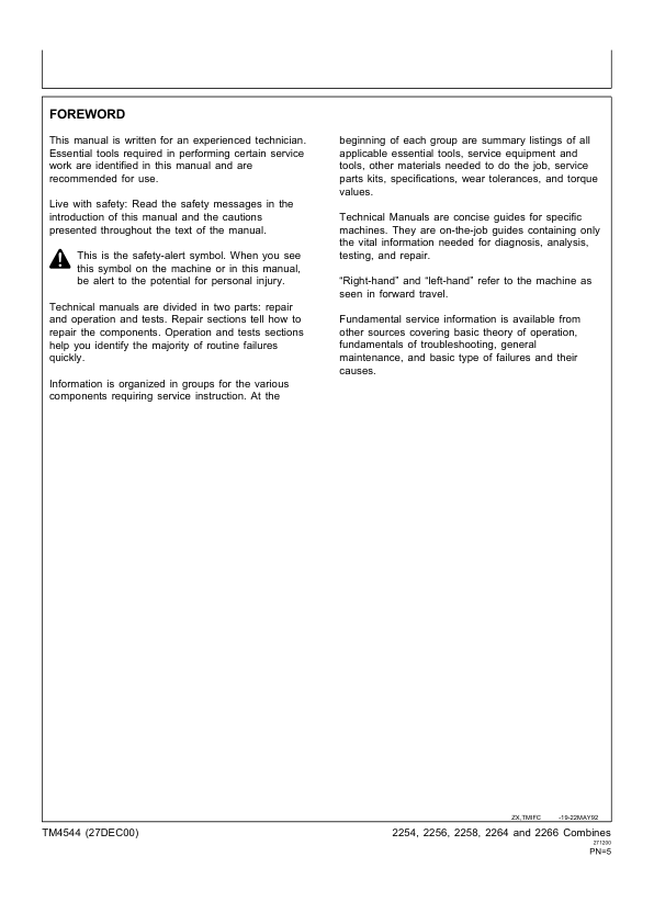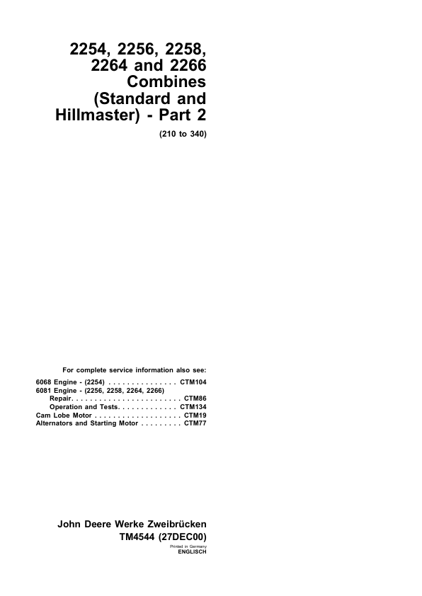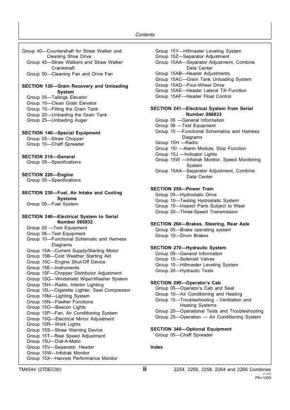 John Deere 2054 2056 2058 2064 2066 Combines Technical Manual TM4544 Part 2