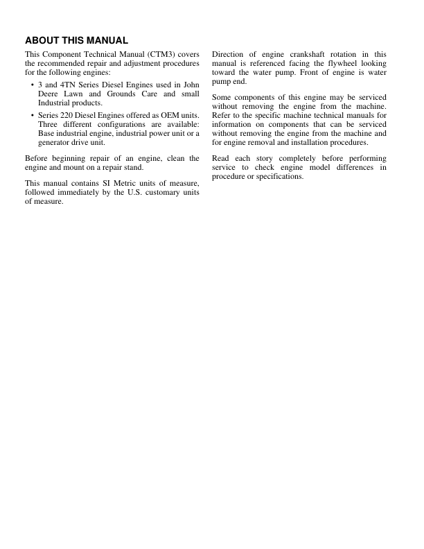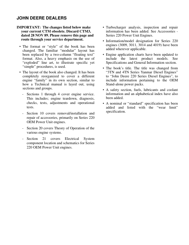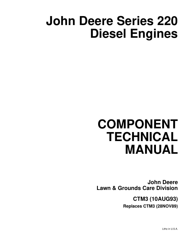 John Deere 220 Series Diesel Engine Technical Manual CTM3