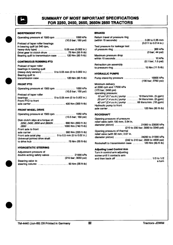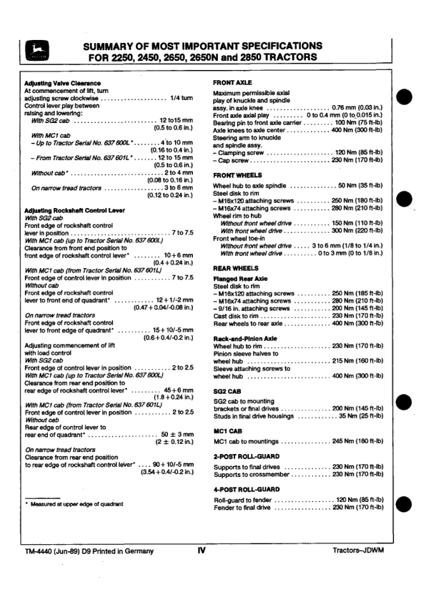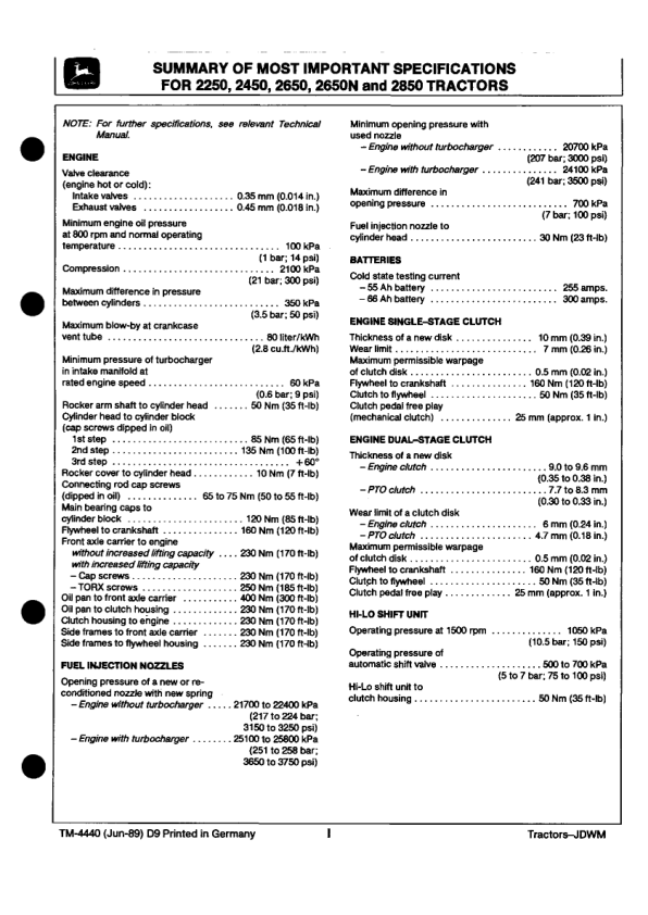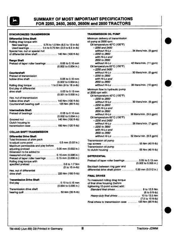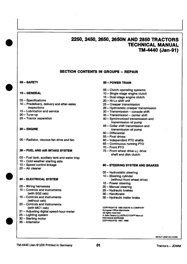 John Deere 2250 2450 2650 2650N 2850 Tractor Service Technical Manual
