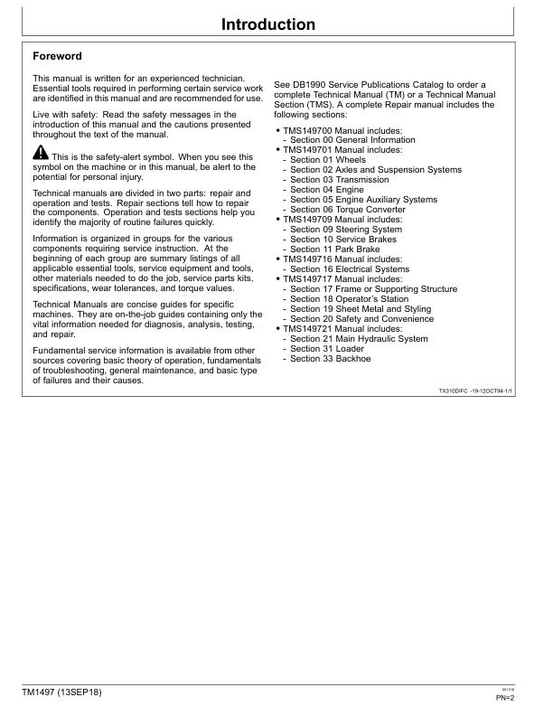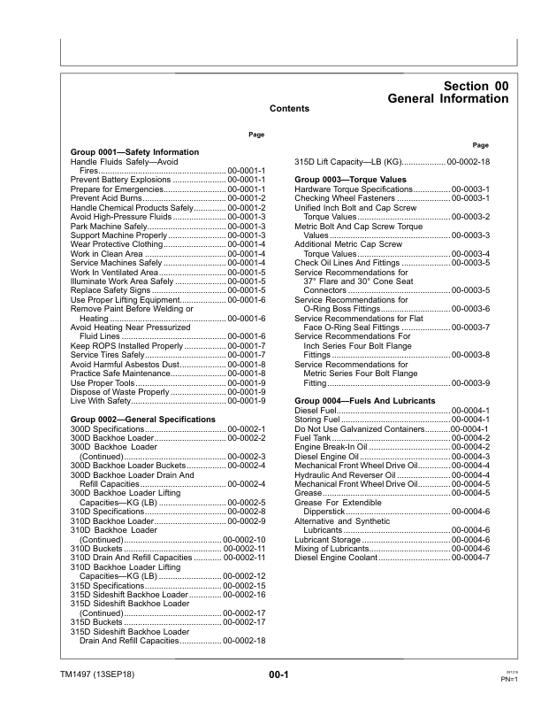 John Deere 300D 310D 315D Backhoe Loader Repair Manual TM1497