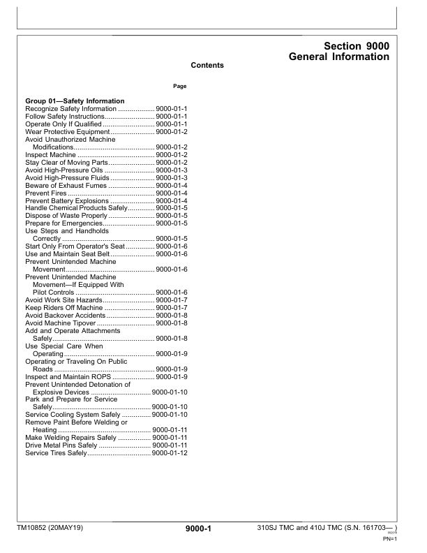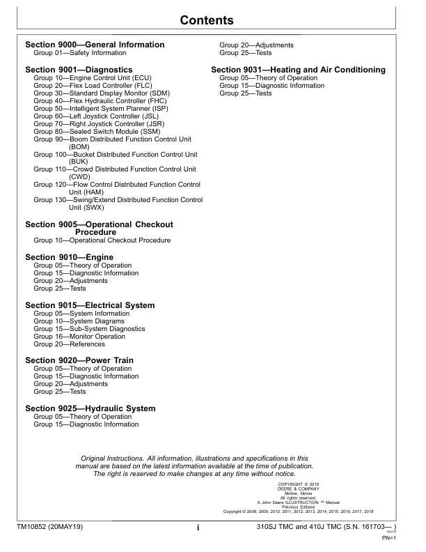 John Deere 310SJ 410J Backhoe Loader Operation and Test Manual TM10852