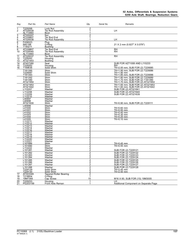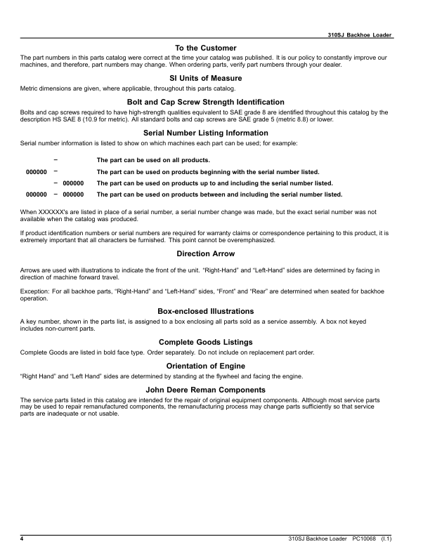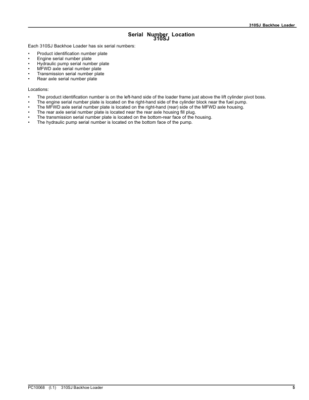 John Deere 310SJ Backhoe Loader Parts Catalog PC10068