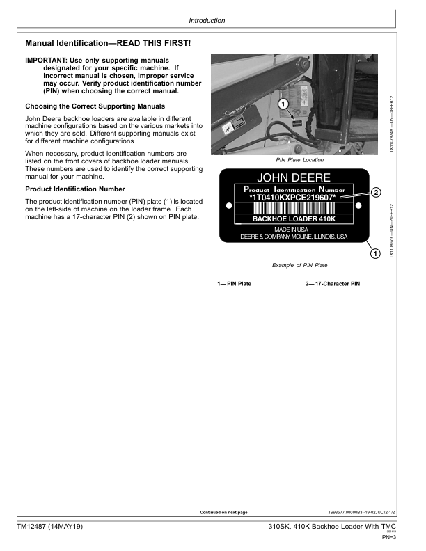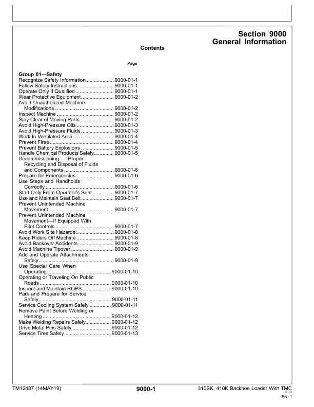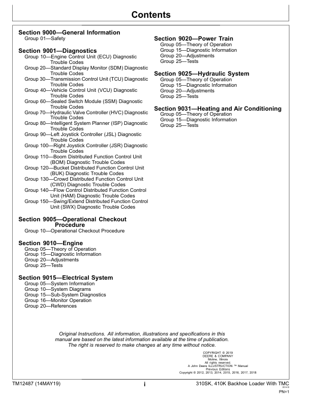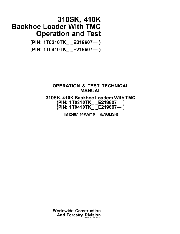 John Deere 310SK 410K Backhoe Loader Operation and Test Manual TM12487