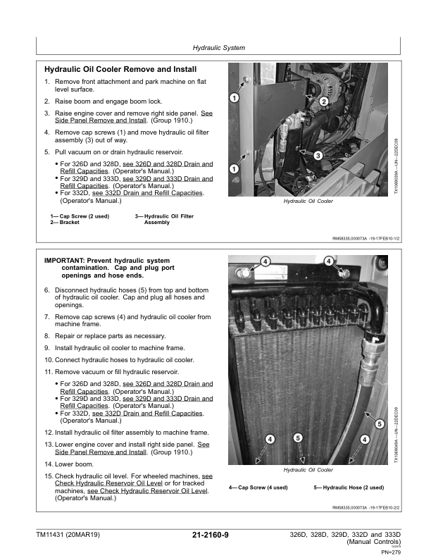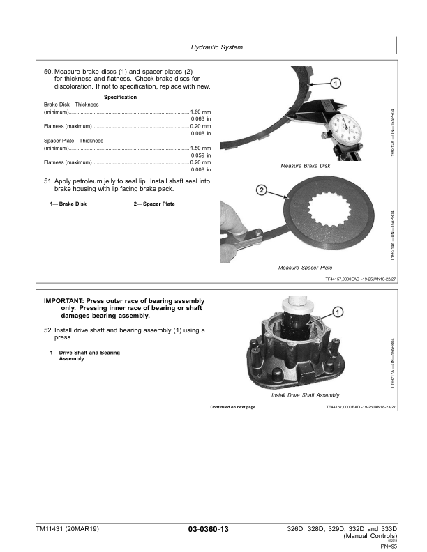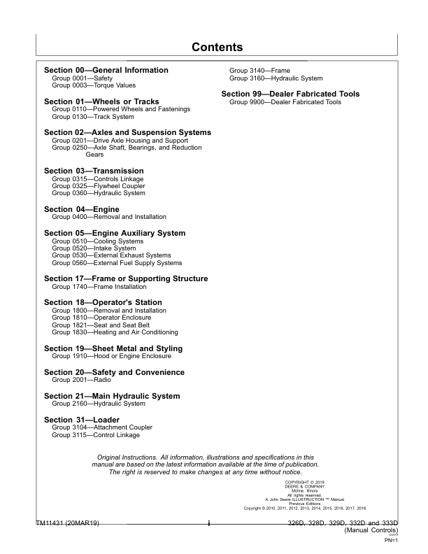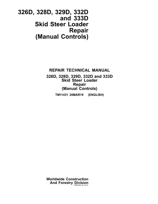 John Deere 326D 328D 329D 332 333D Skid Steer Loader Repair Manual TM11431