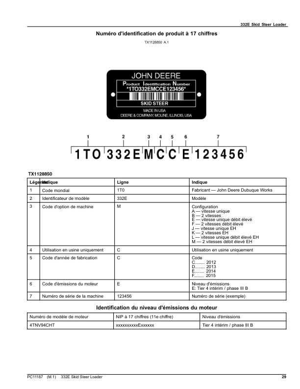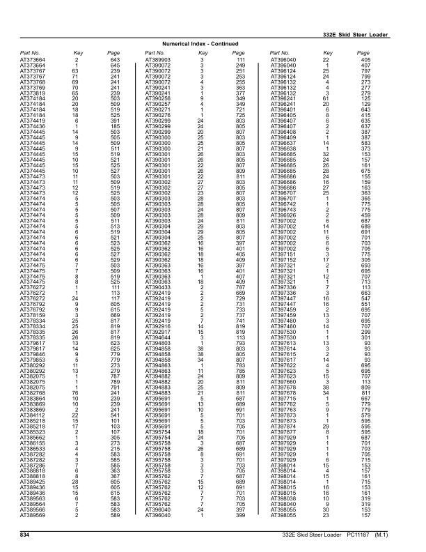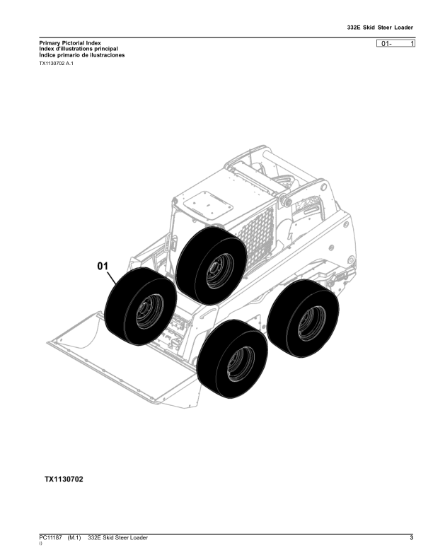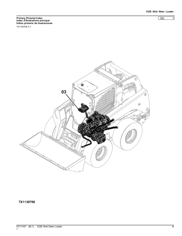 John Deere 332E Skid Steer Loader Parts Catalog PC11187