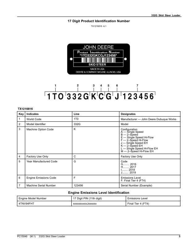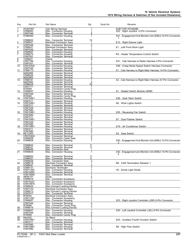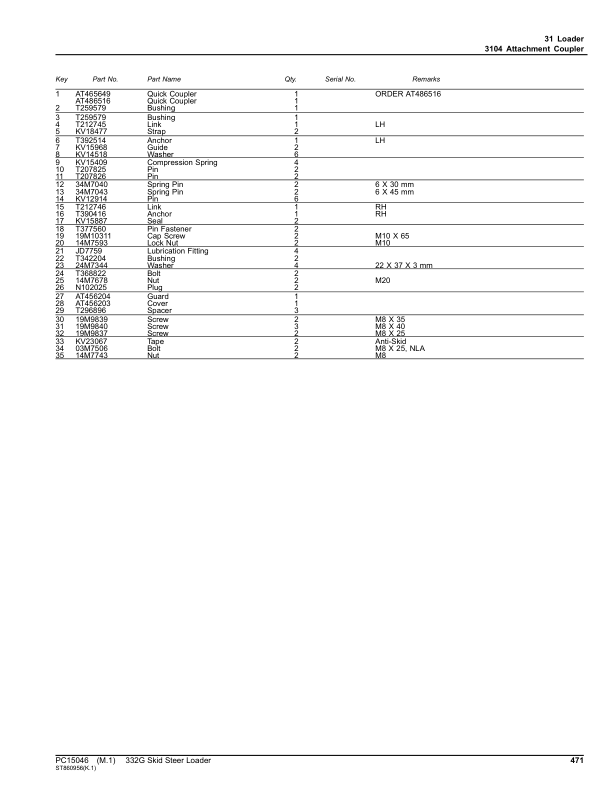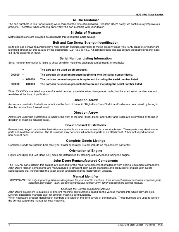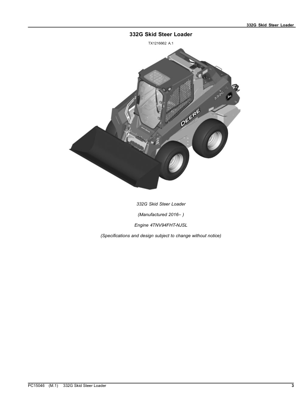John Deere 332G Skid Steer Loader Parts Catalog PC15046