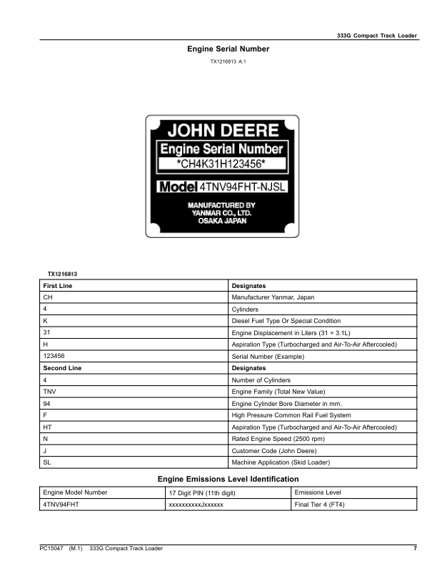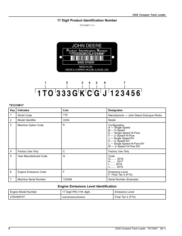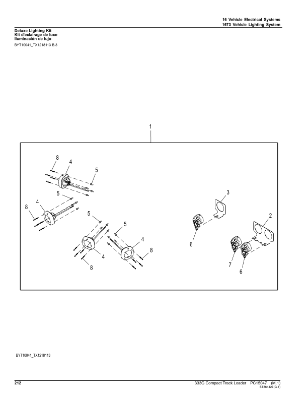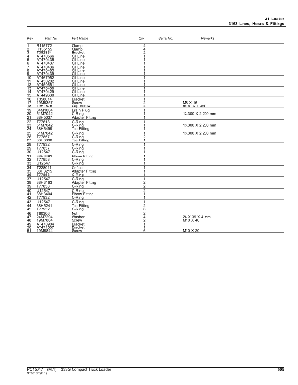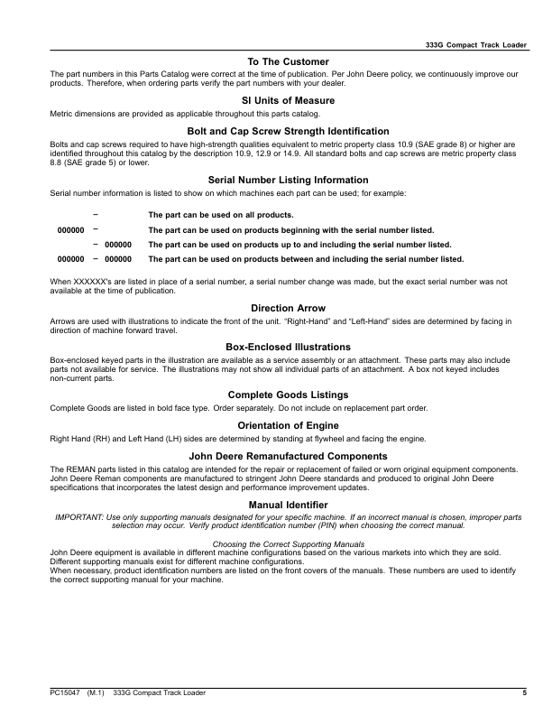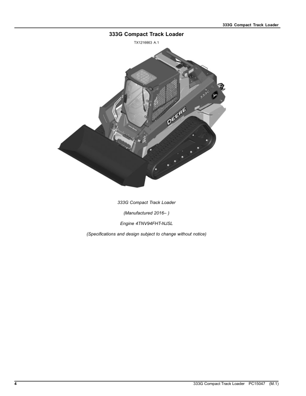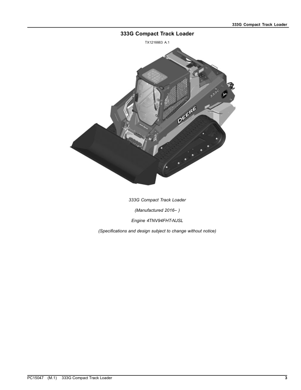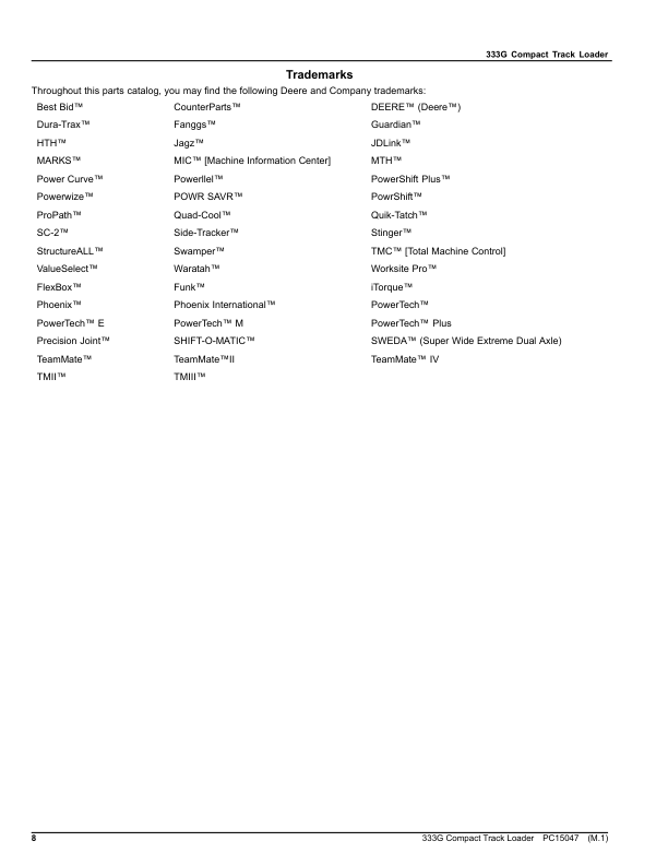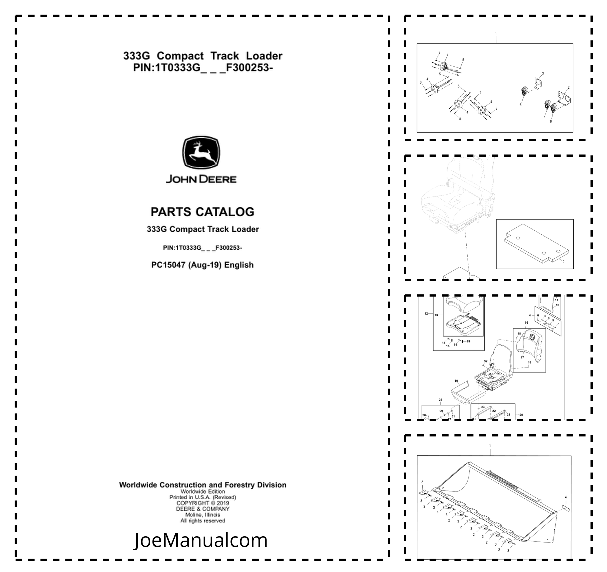 John Deere 333G Skid Steer Loader Parts Catalog PC15047