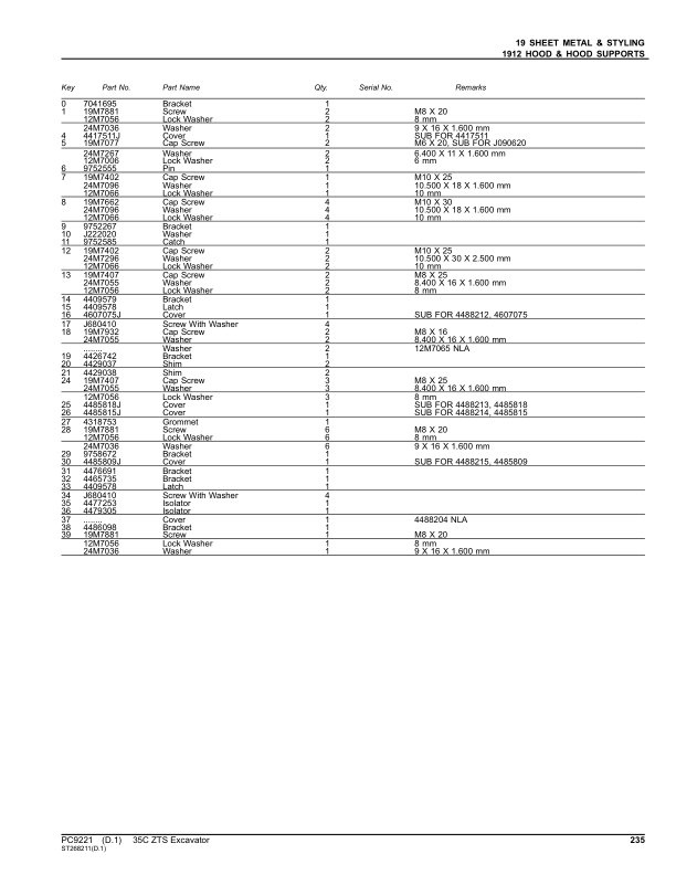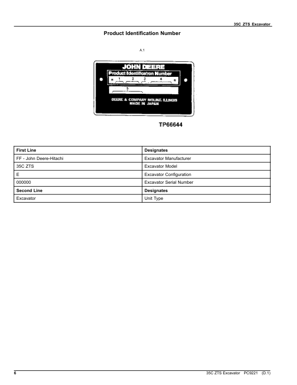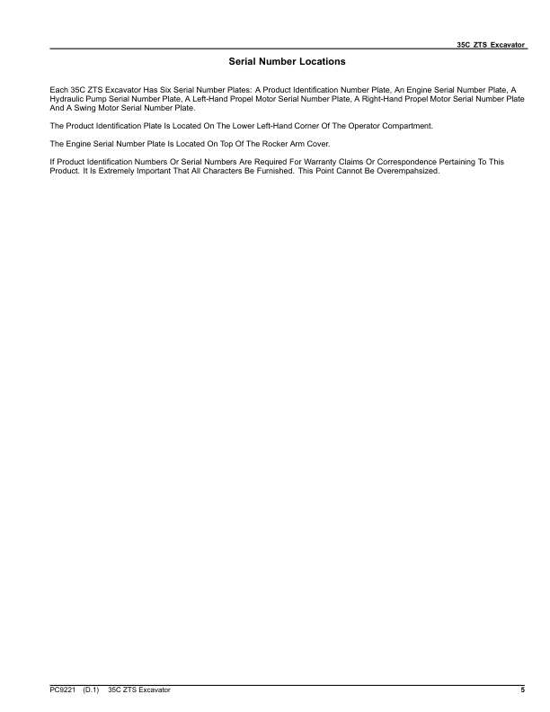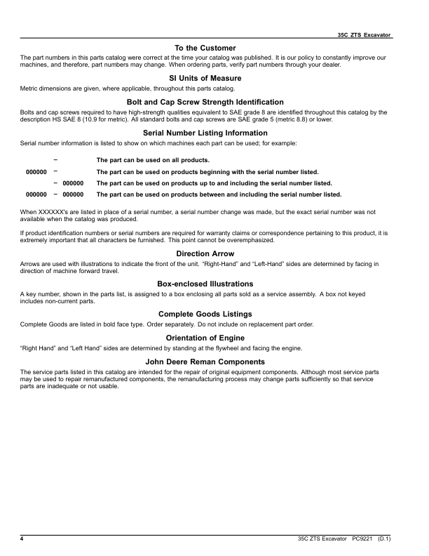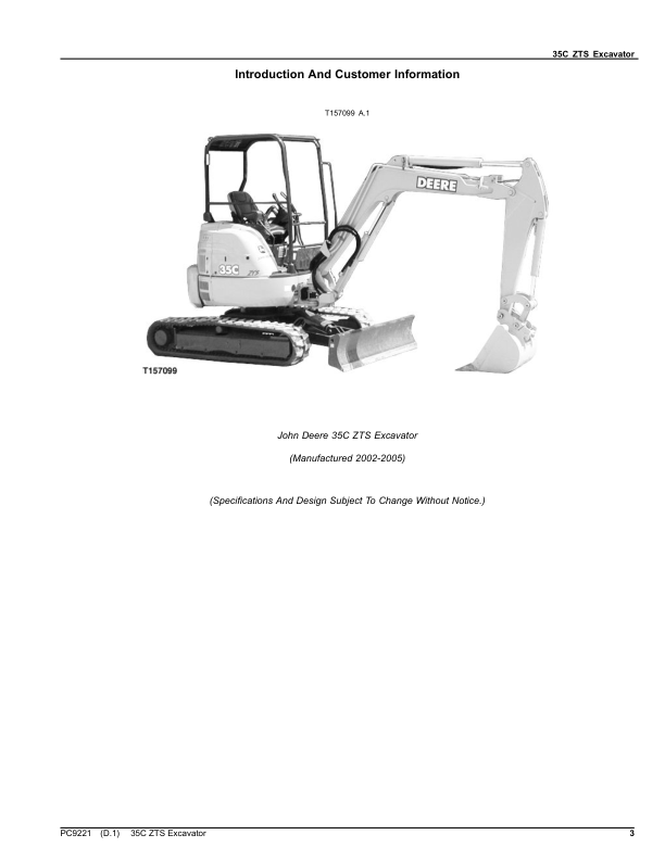 John Deere 35C ZTS Excavator Parts Catalog PC9221