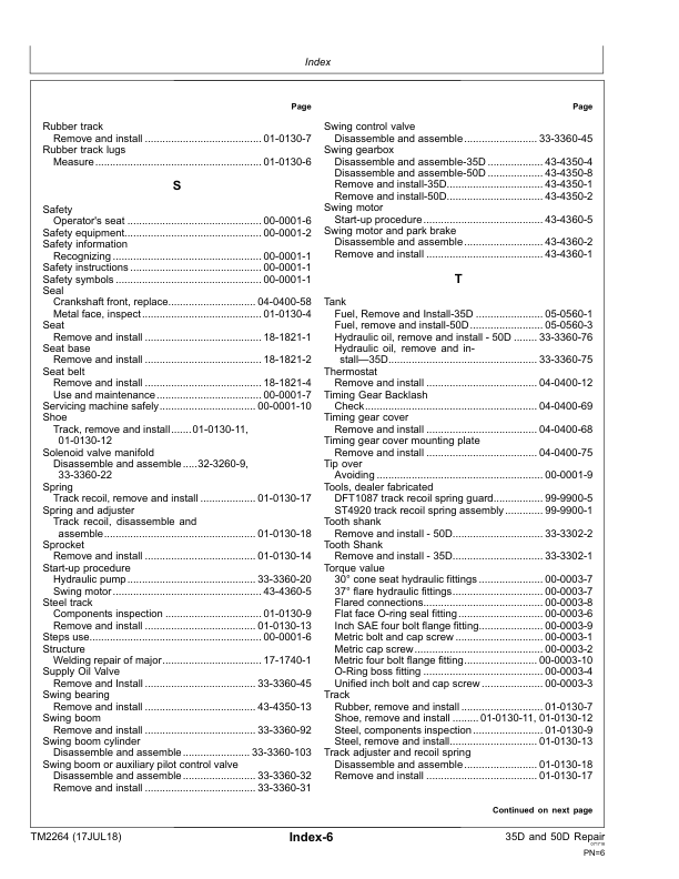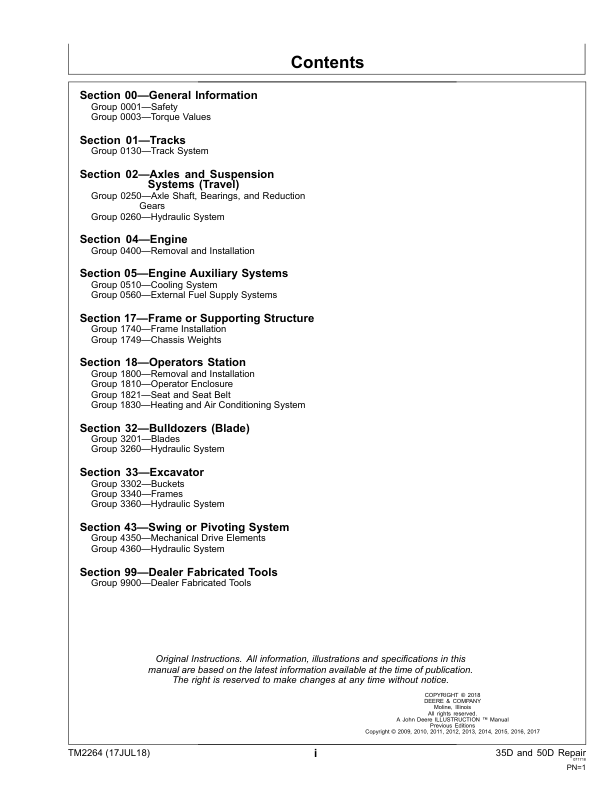 John Deere 35D 50D Excavator Repair Manual TM2264