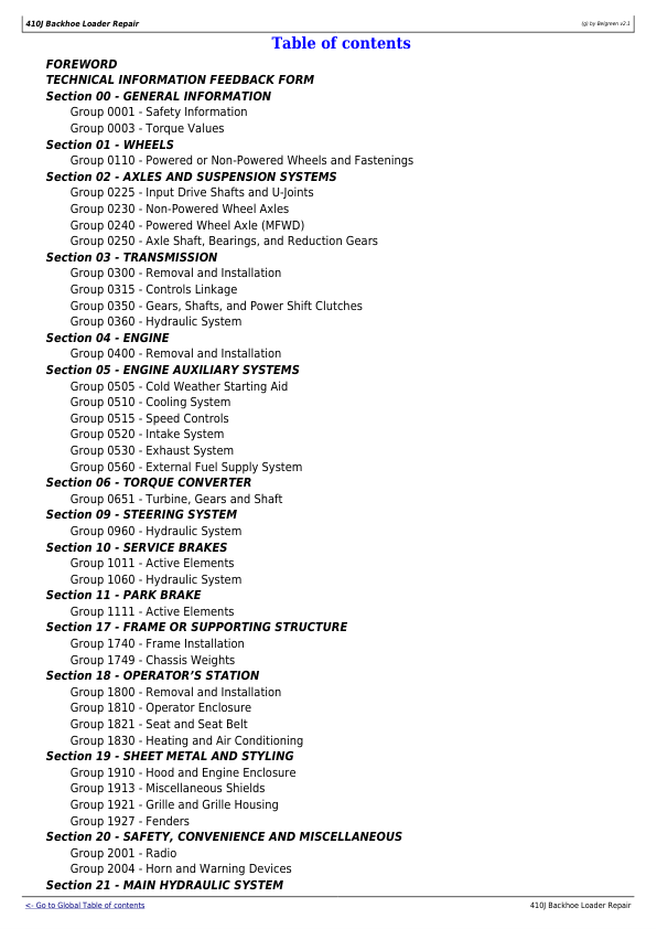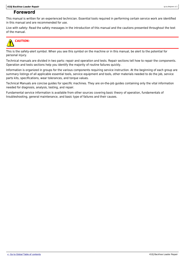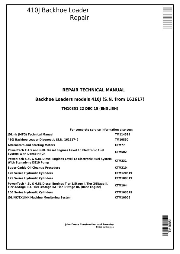 John Deere 410J Backhoe Loader Repair Technical Manual