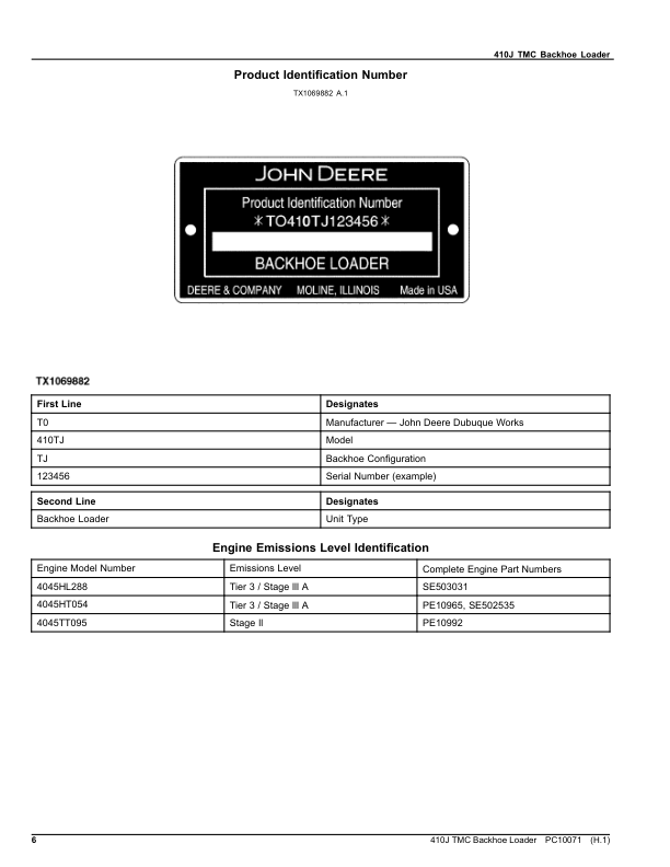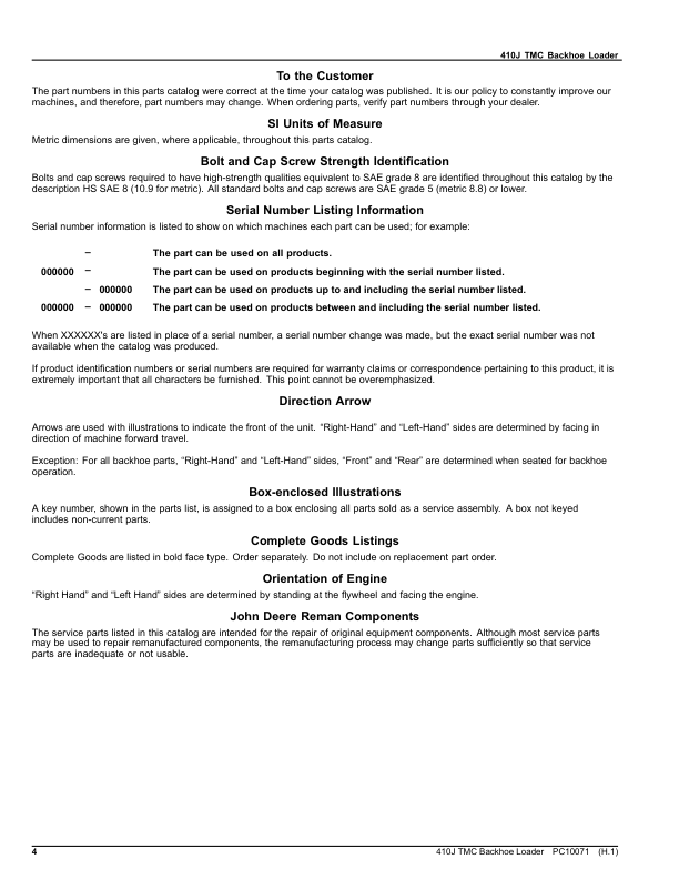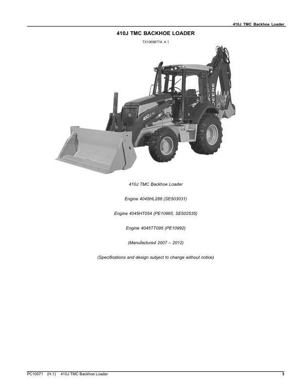 John Deere 410J TMC Backhoe Loader Parts Catalog PC10071