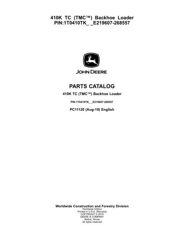 John Deere 410K TC TMC Backhoe Loader Parts Catalog PC11120
