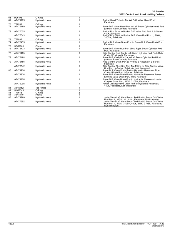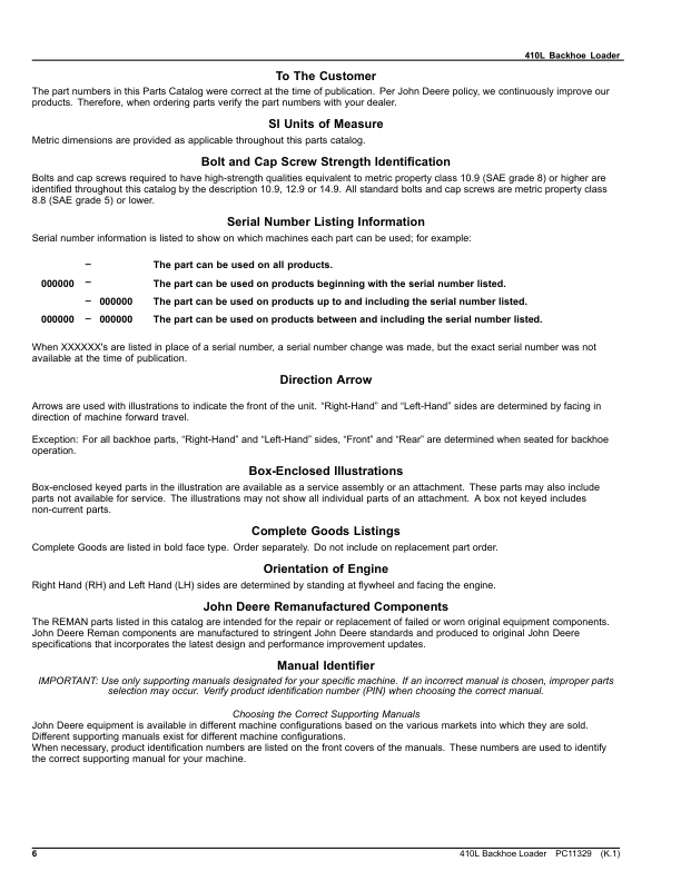 John Deere 410L Backhoe Loader Parts Catalog PC11329