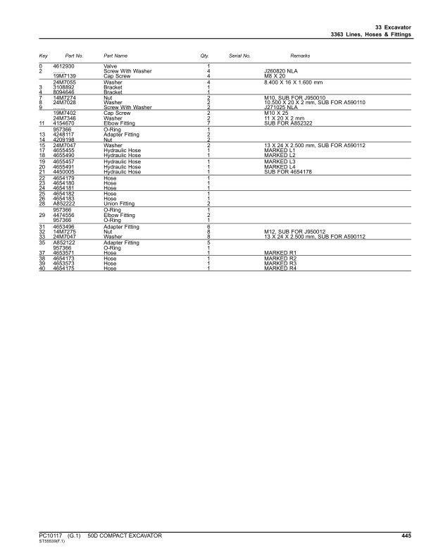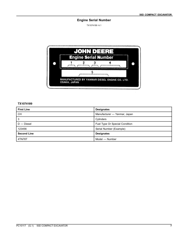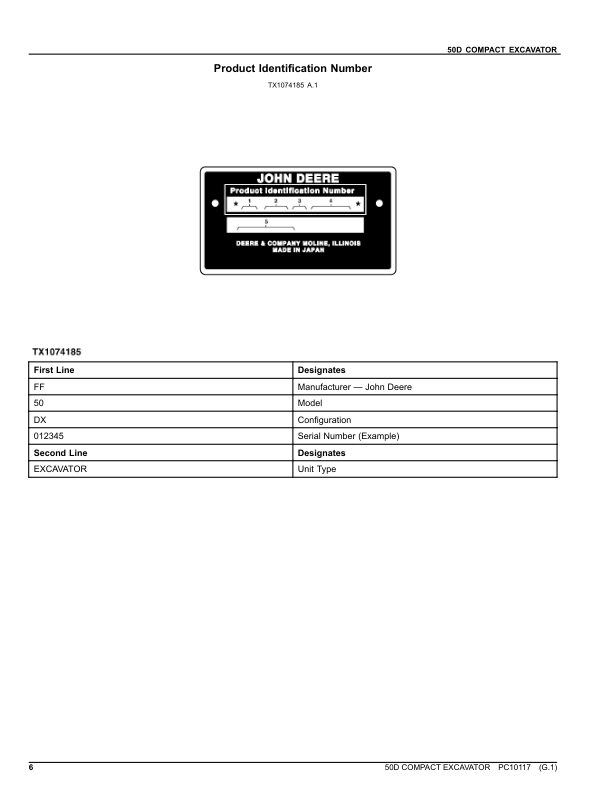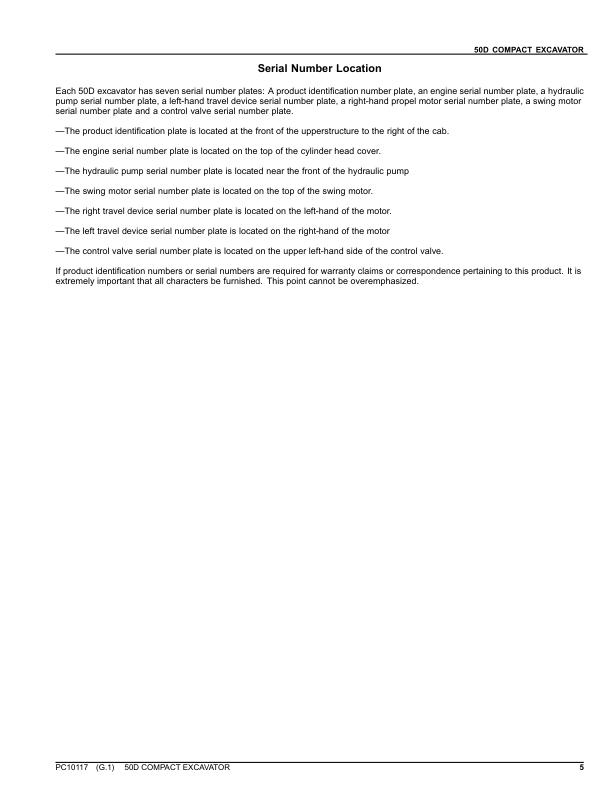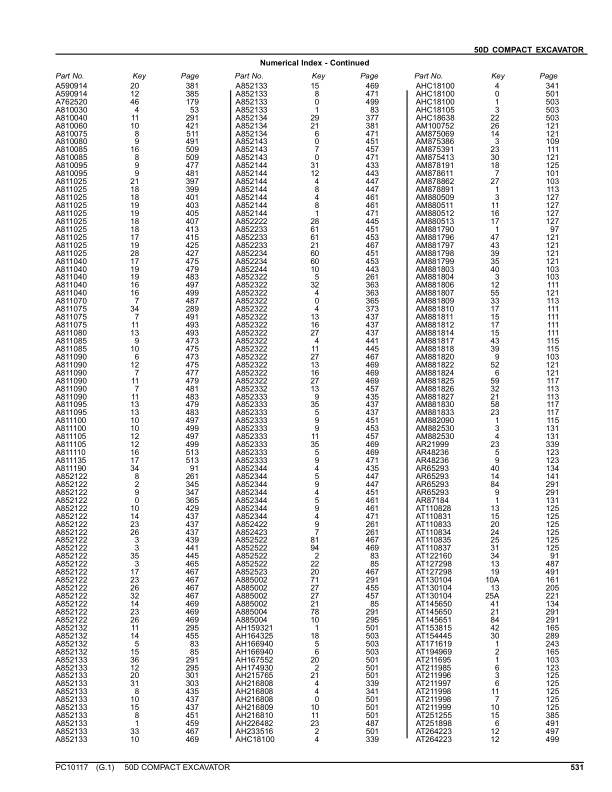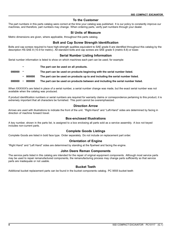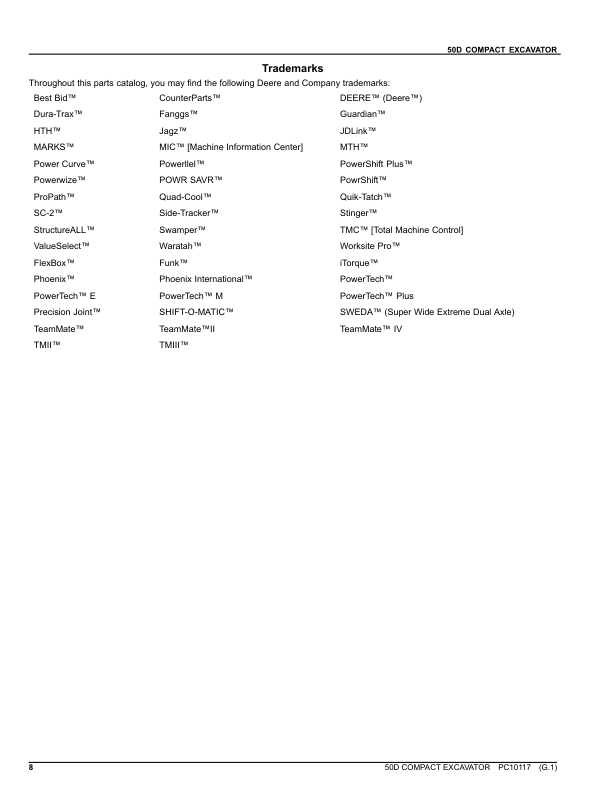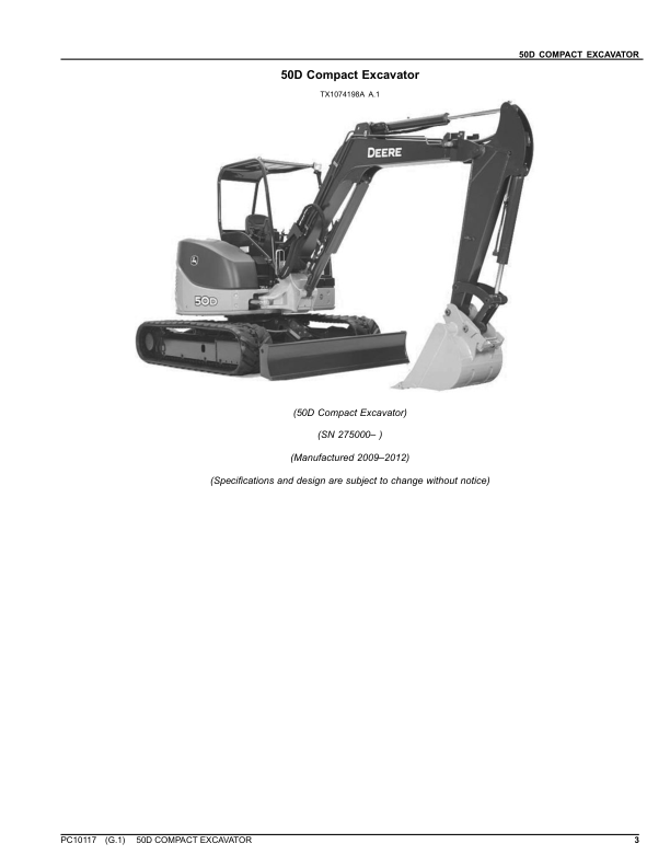 John Deere 50D Compact Excavator Parts Catalog PC10117