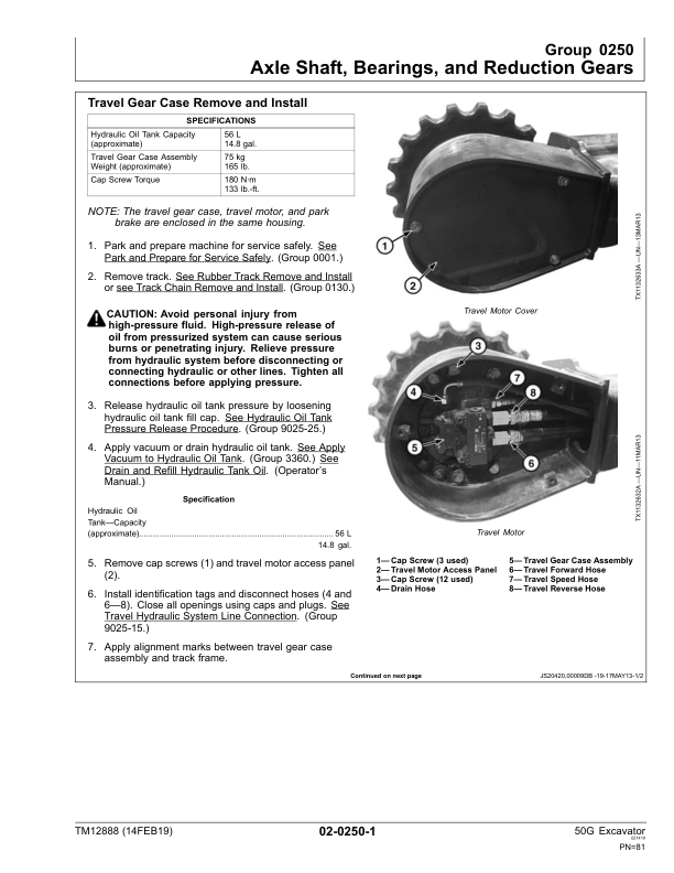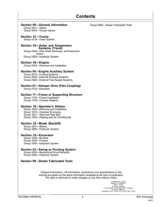 John Deere 50G Compact Excavator Repair Manual TM12888