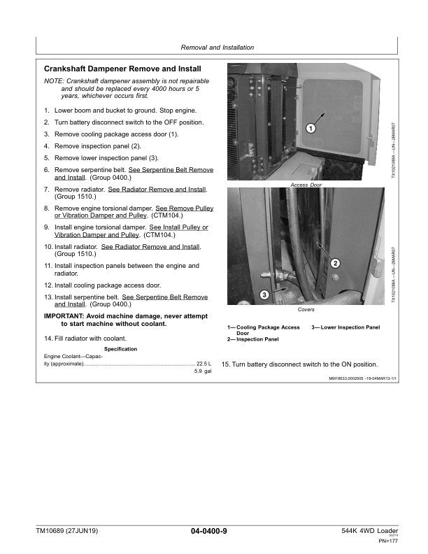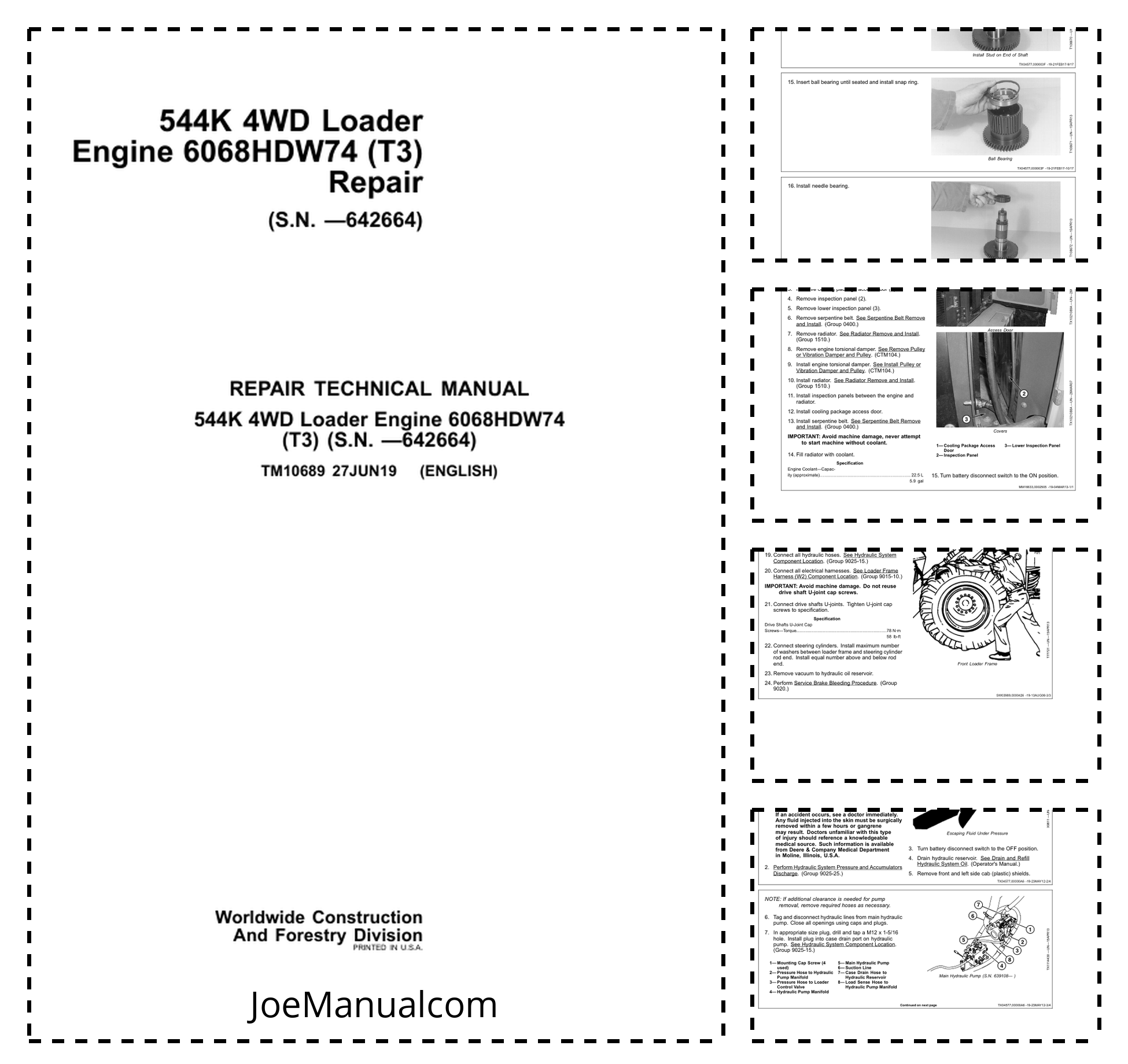 John Deere 544 K 4 WD Loader Engine 6068 HDW74 T3 Operation and Test Manual TM10689 This manual provides comprehensive guidance for operating and testing the John Deere 544 K 4WD loader’s 6068 HDW74 T3 engine. It includes detailed procedures for daily use, maintenance, and inspection, ensuring optimal performance and reliability. The document outlines step-by-step instructions for routine operations, troubleshooting common issues, and conducting systematic engine tests to verify functionality. Designed for operators and technicians, it emphasizes safety protocols, proper maintenance schedules, and diagnostic techniques to maintain equipment efficiency. Essential for understanding the loader’s engine systems, this manual serves as a critical reference for both on-the-job tasks and preventive care.