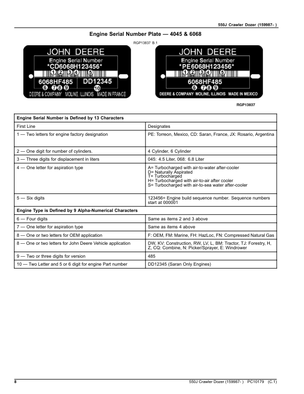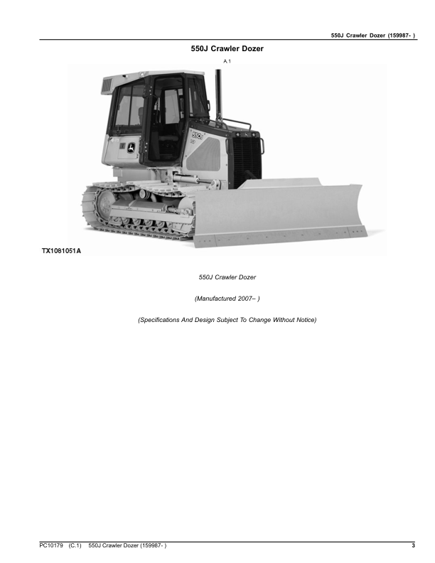 John Deere 550J Crawler Dozer Parts Catalog PC10179
