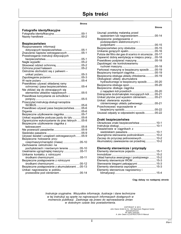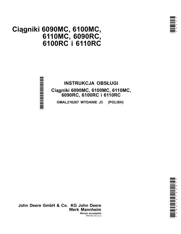 John Deere 6090MC 6100MC 6110MC 6090RC 6100RC 6110RC Tractor Operators Manual PL