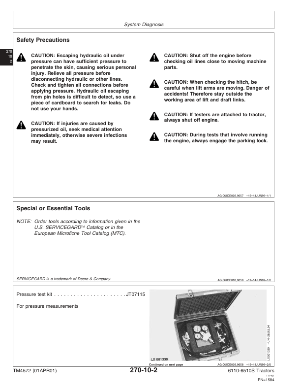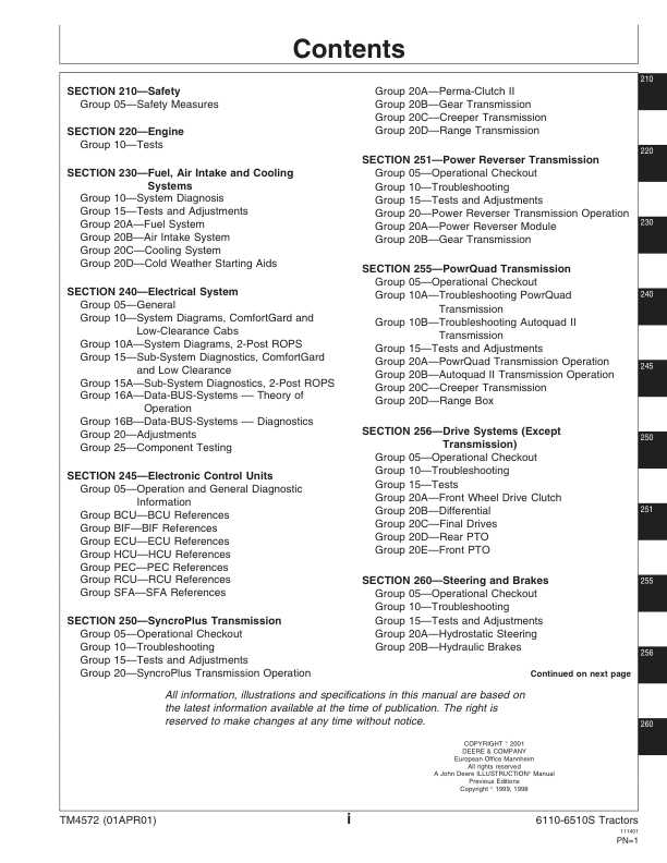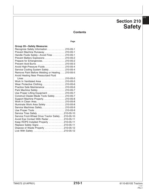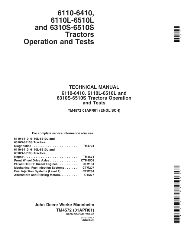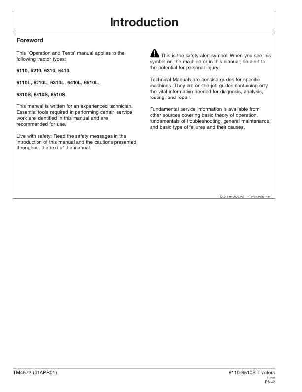 John Deere 6110 – 6510S Tractor Operation and Test Technical Manual