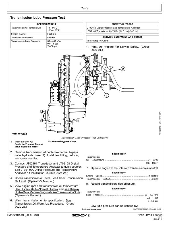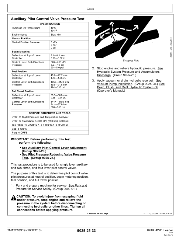 John Deere 624K 4WD Loader Operation and Test Technical Manual TM13210X19
