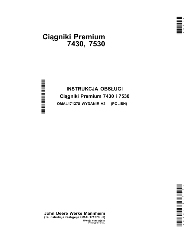 John Deere 7430 7530 Tractor Operators Manual PL