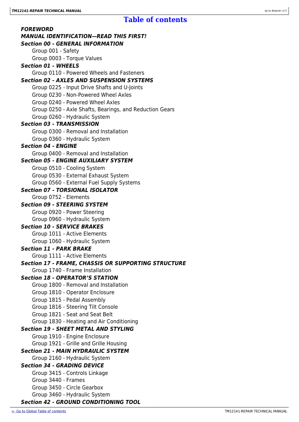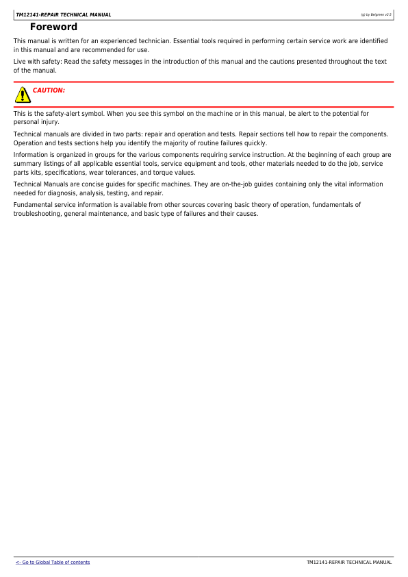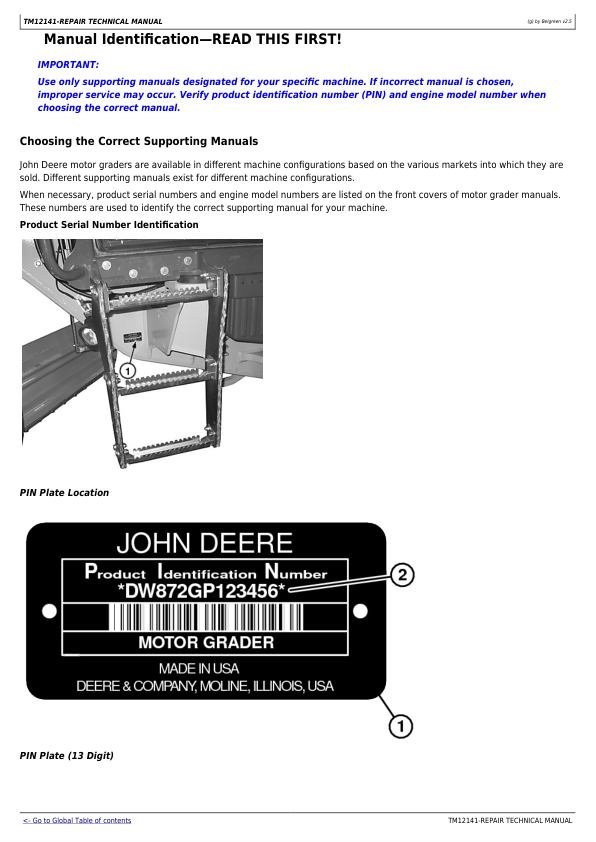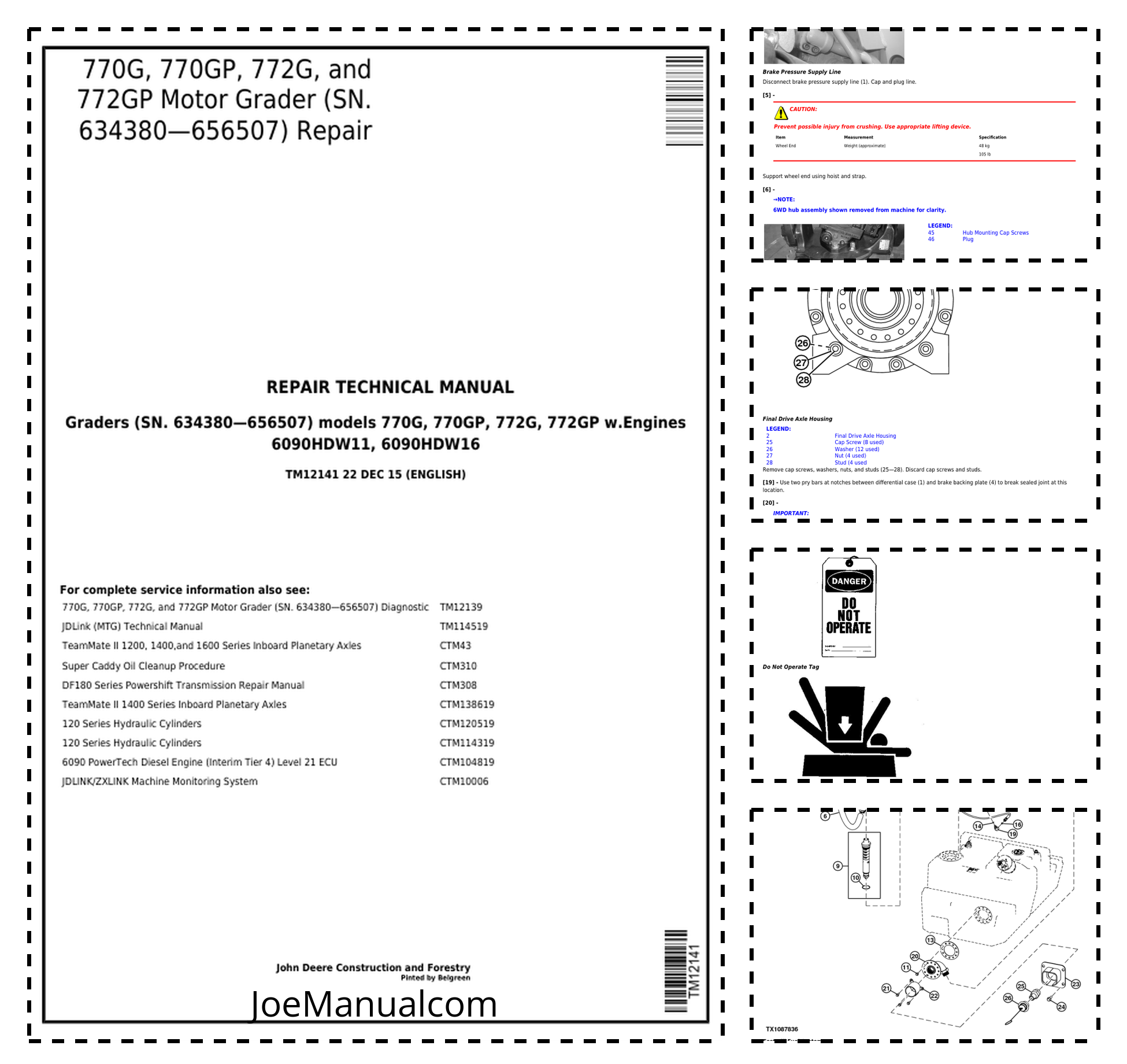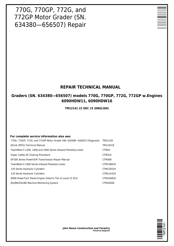 John Deere 770G 770GP 772G 772GP Motor Grader Repair Technical Manual TM12141
