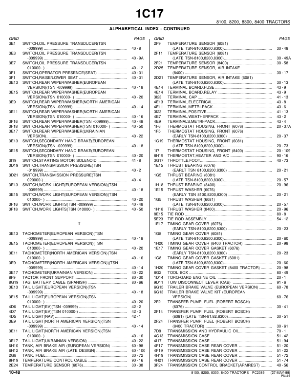 John Deere 8100 8200 8300 8400 Tractors Parts Catalog