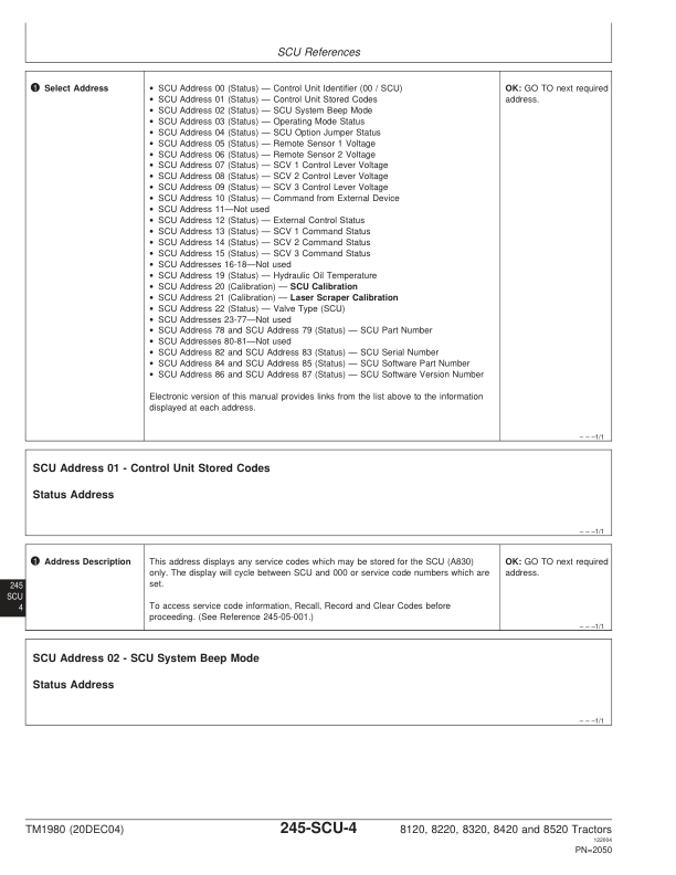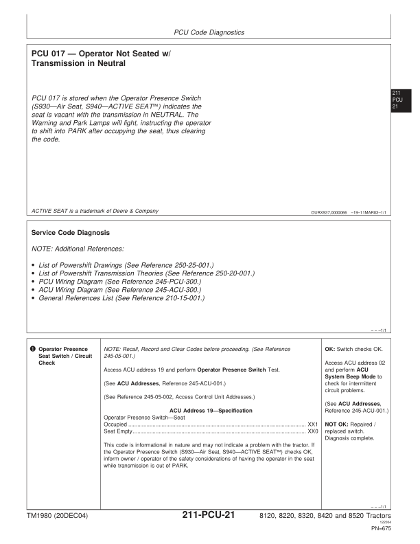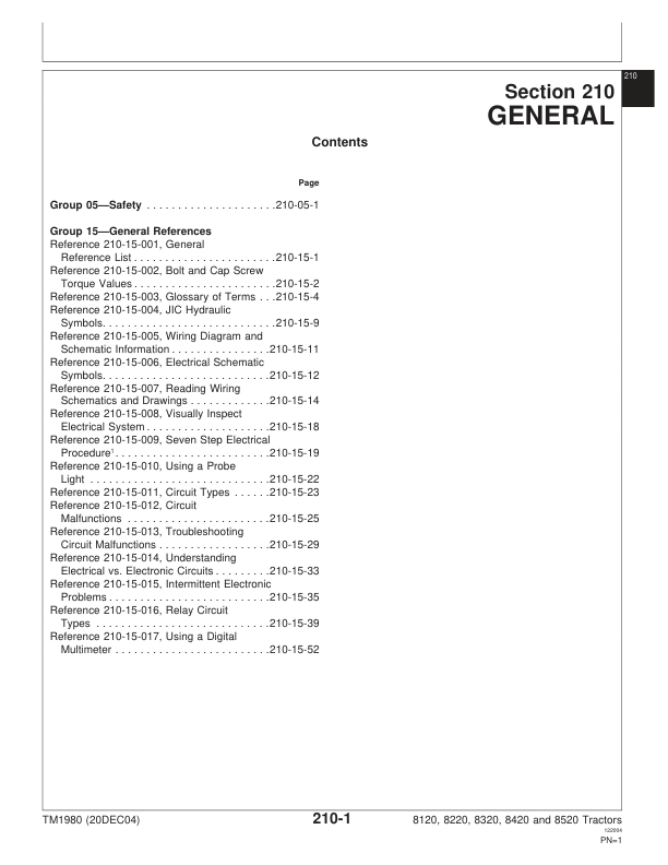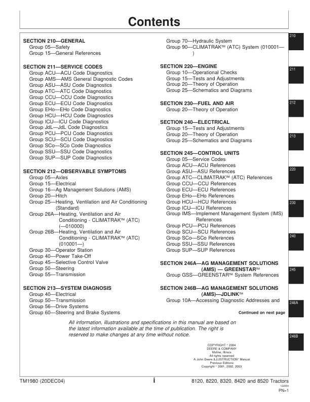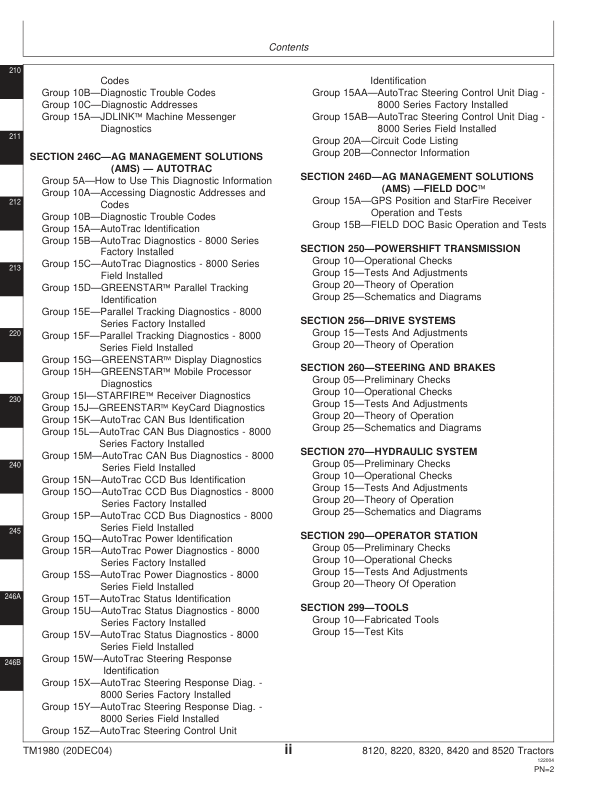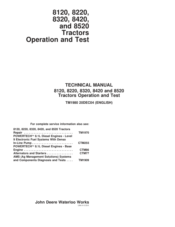 John Deere 8120 8220 8320 8420 8520 Tractor Operation and Test Manual